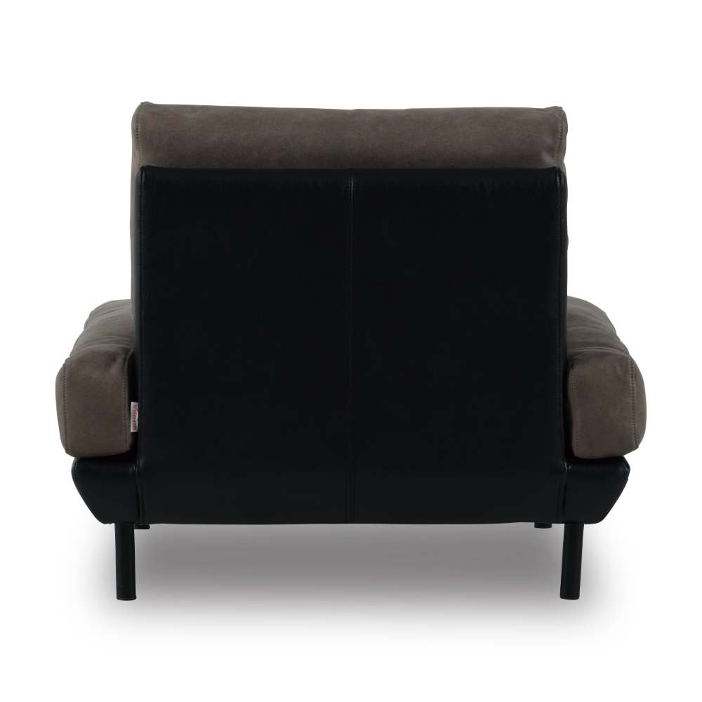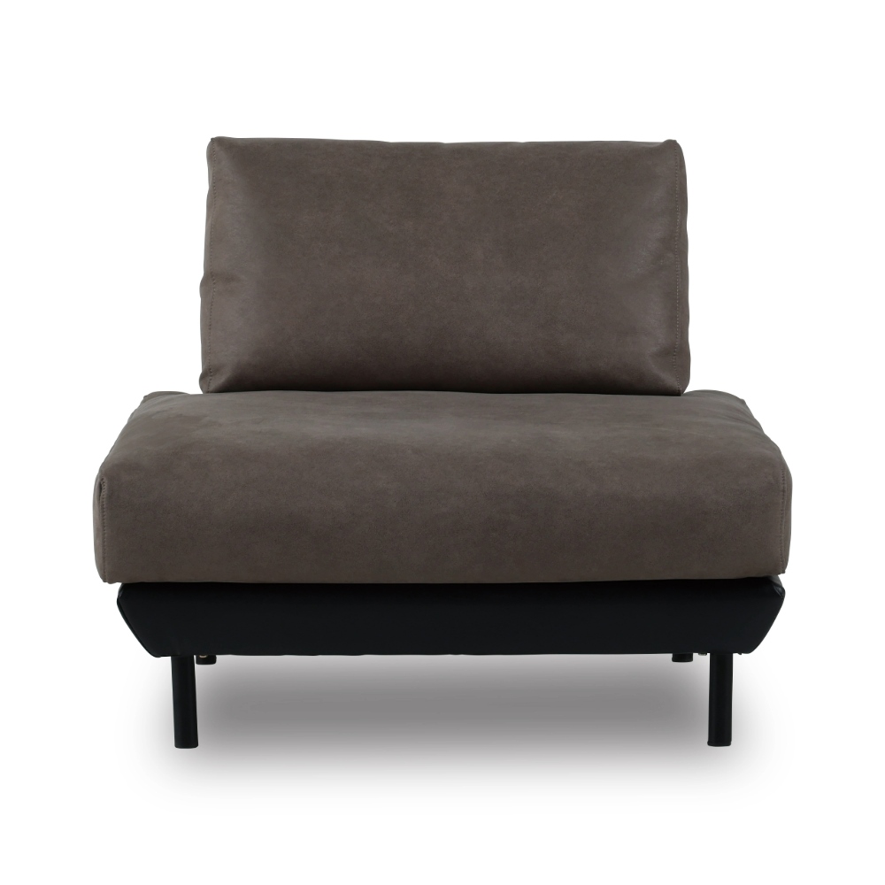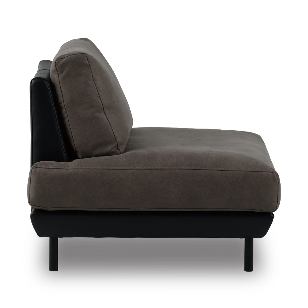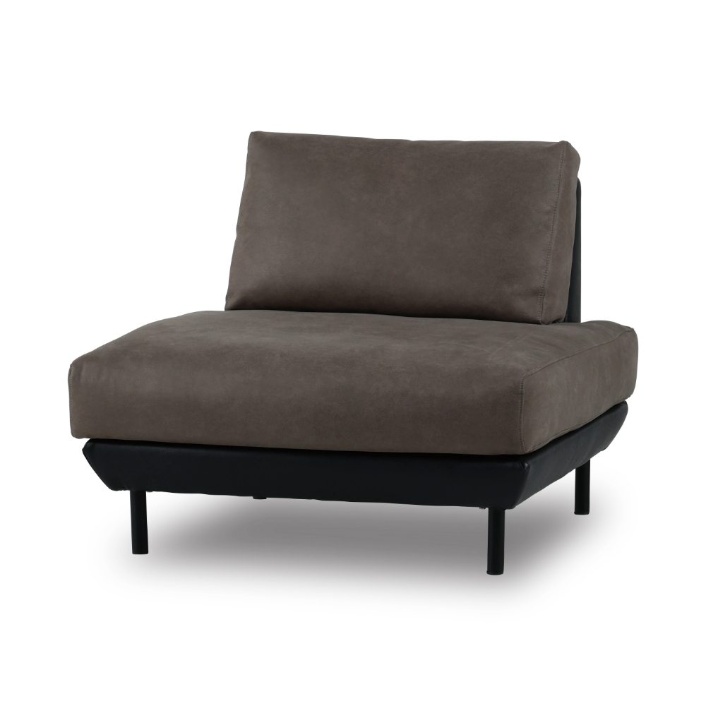 イタリア人デザイナーのモダンなデザインに異素材ツートン張りを採用し、クッション部分にはレザーテックス(ポリエステル布)を、フレームにはユーロテック(合成皮革)を使用。