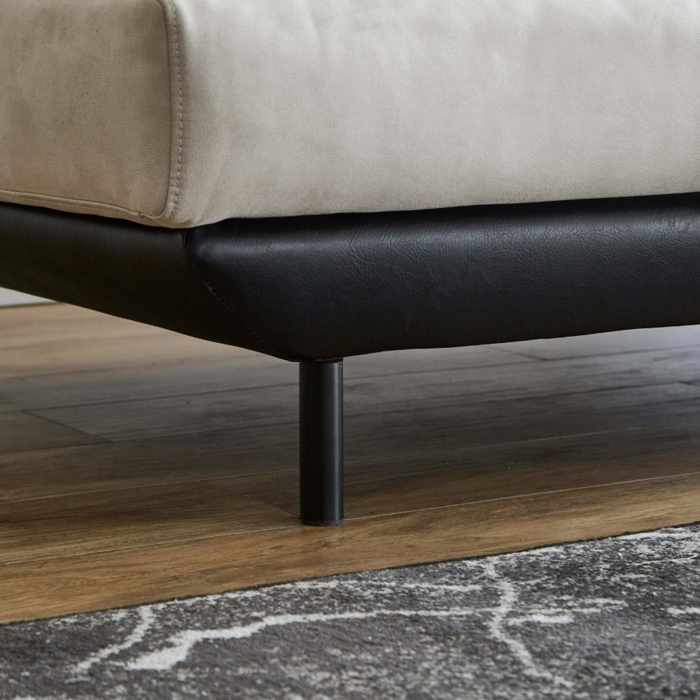 イタリア人デザイナーのモダンなデザインに異素材ツートン張りを採用し、クッション部分にはレザーテックス(ポリエステル布)を、フレームにはユーロテック(合成皮革)を使用。