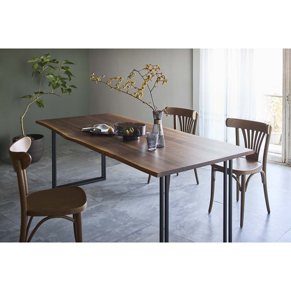 天然木×スチールレッグが一点ものの風格に