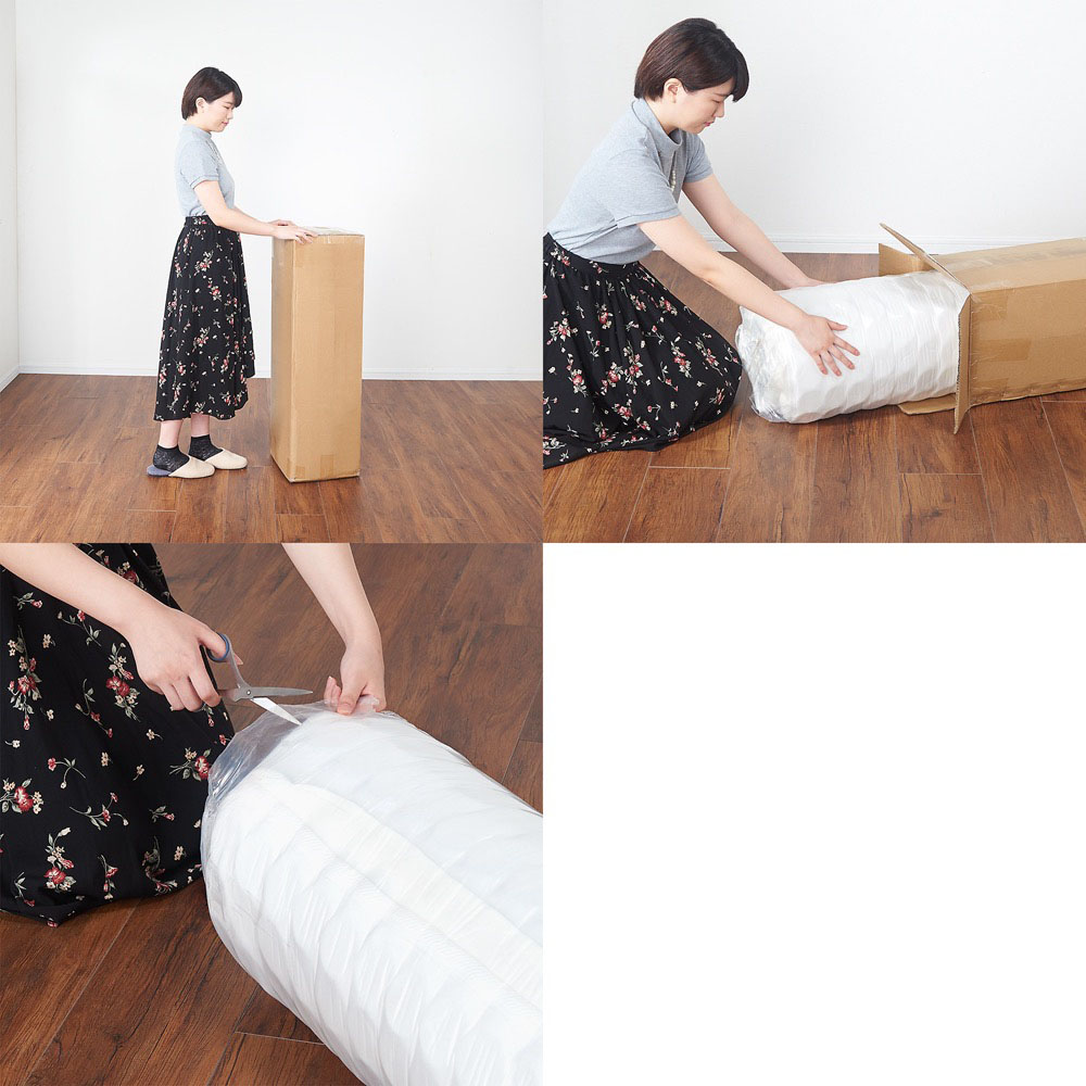 ※ベッド本体と一緒にご購入した場合、先にベッド本体を組み立て、最後にマットレスのロール状態を開封してください。