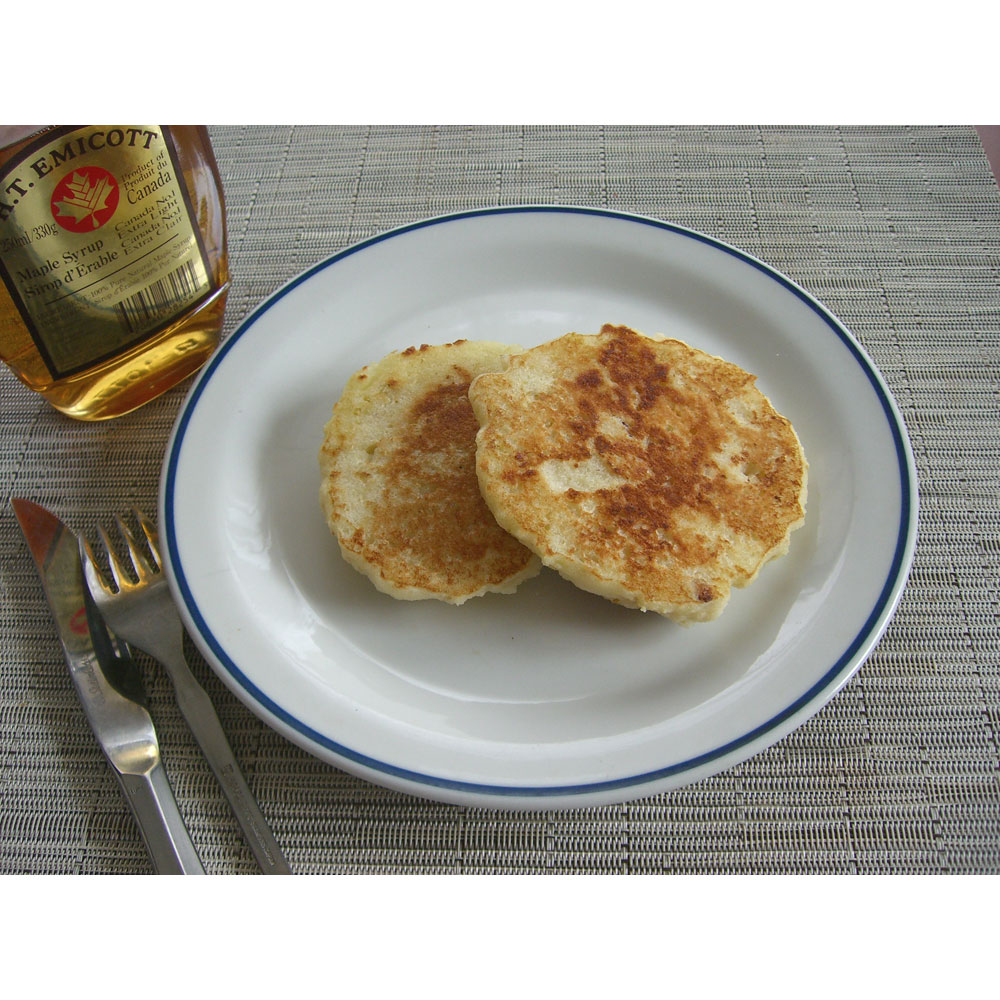 (3)できた米と牛乳とリンゴのすりおろしで作ったパンケーキ