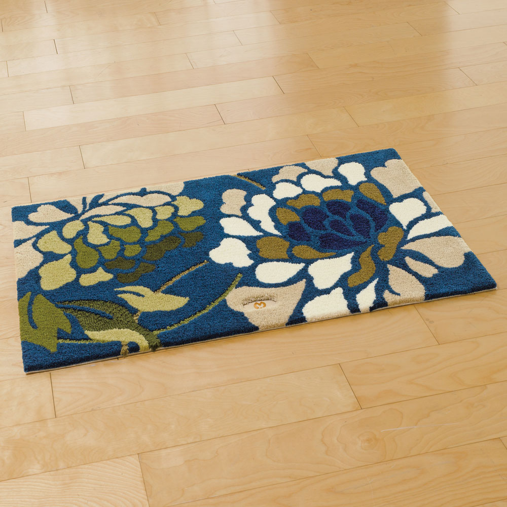 イタリア・ミラノ生まれの格式高いファッションブランド「ミラ・ショーン」のマットは、厚さ約18mmとボリュームがあり、ふっくらとした踏み心地なのが特長。「ミラ・ショーン」らしい大胆なデザインで、1日に何度も利用する玄関に、華やかさをプラスしてくれます。外出や帰宅のたびに家族の気持ちが明るくなりそう。お客様がいらっしゃった際も、こんなマットがあったら玄関の印象がアップしそうです。手前中央には、ブランドを象徴するロゴが入っています。