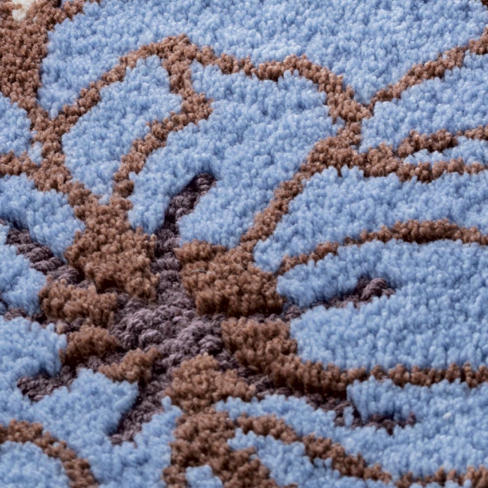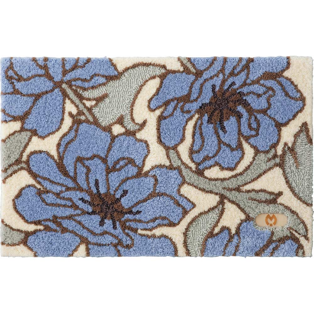 日本国内で生産されたフック織のマット。ふんわりとやわらかく、肌ざわりは合成繊維の中で一番ウールに近い感触と言われている、アクリル100%。保温性がよく、発色もきれいです。細かく調整して決定した絶妙なカラーもポイント。ミラ・ショーンの大胆な花モチーフをさらに引き立てます。