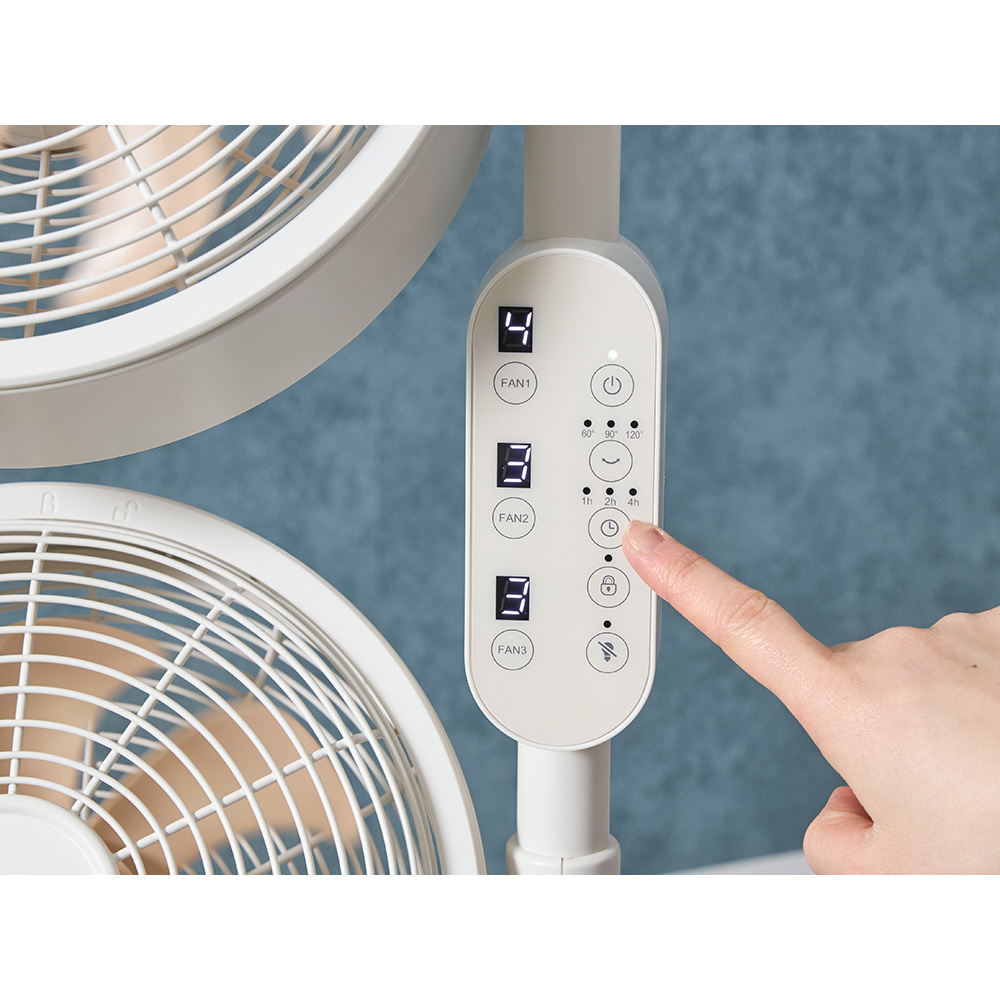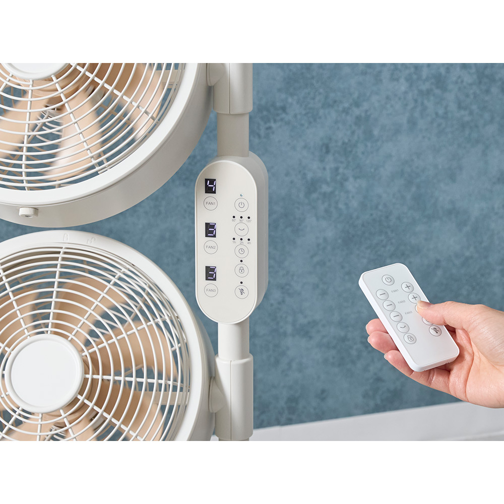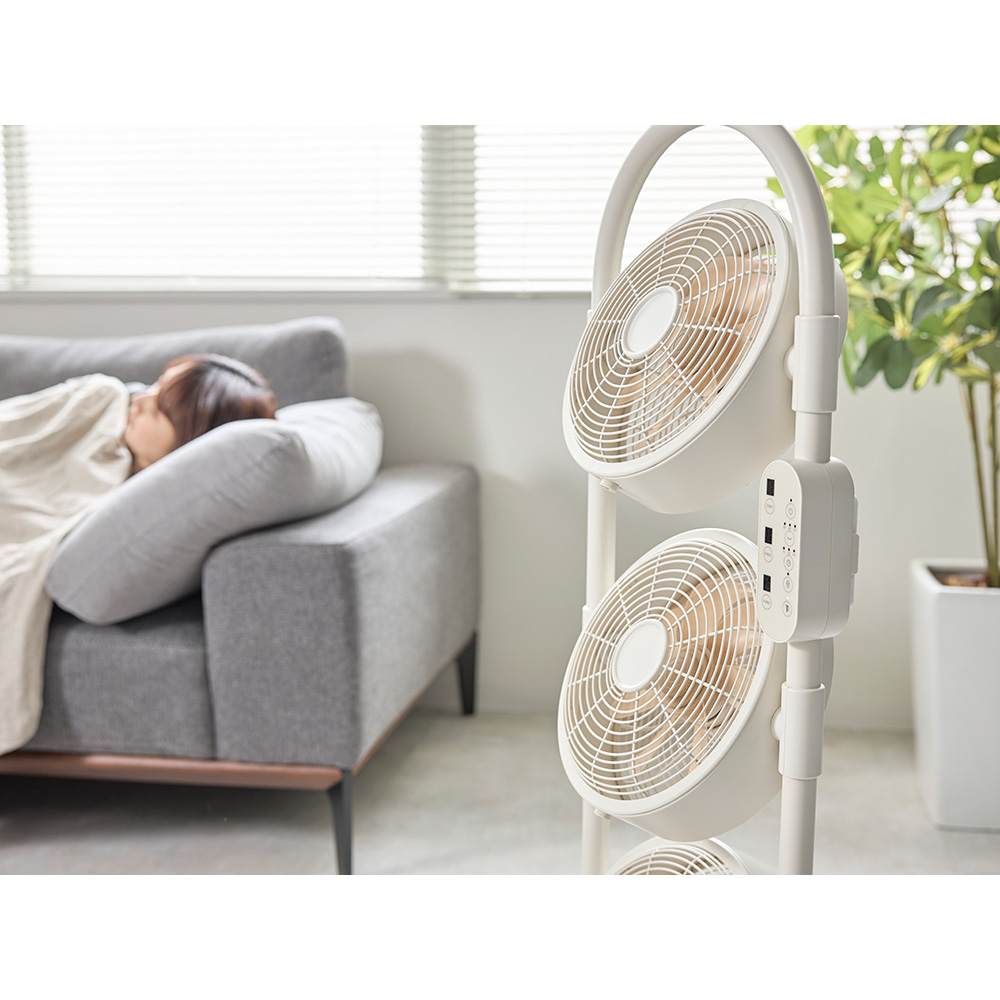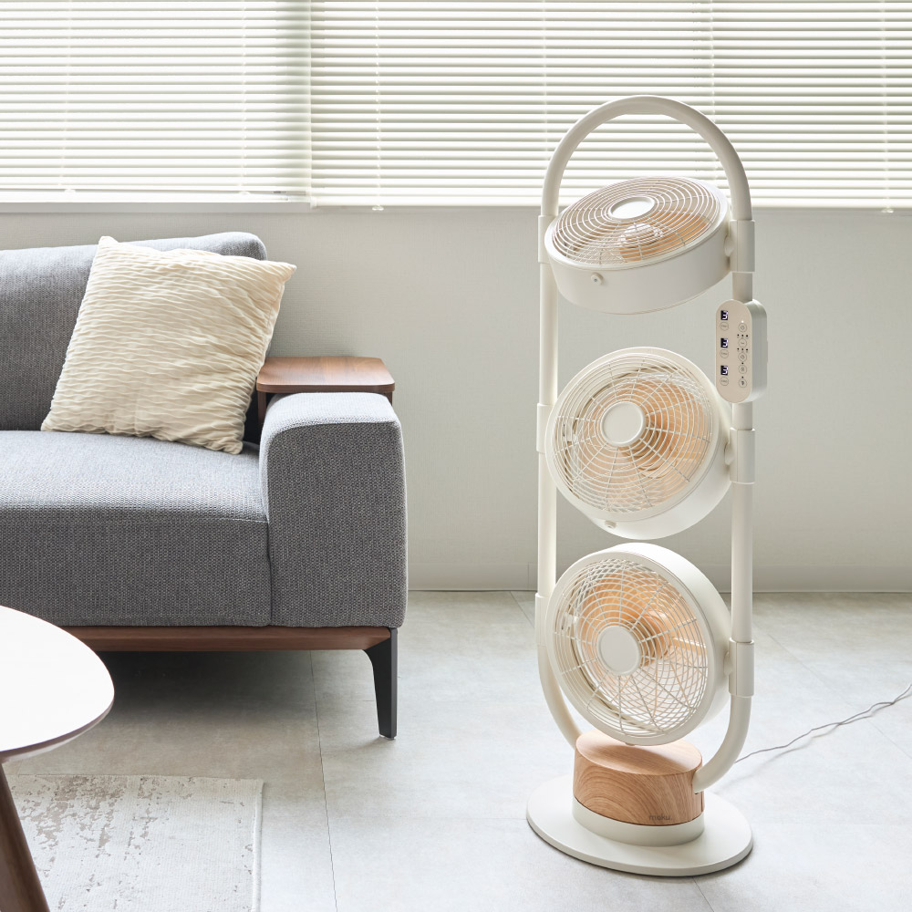 ●3つのファンの風量と角度を調整することで、扇風機の機械的な風でなく、自然な優しい風を感じることが出来ます。ファンごとに7段階+ON/OFFの設定ができます。