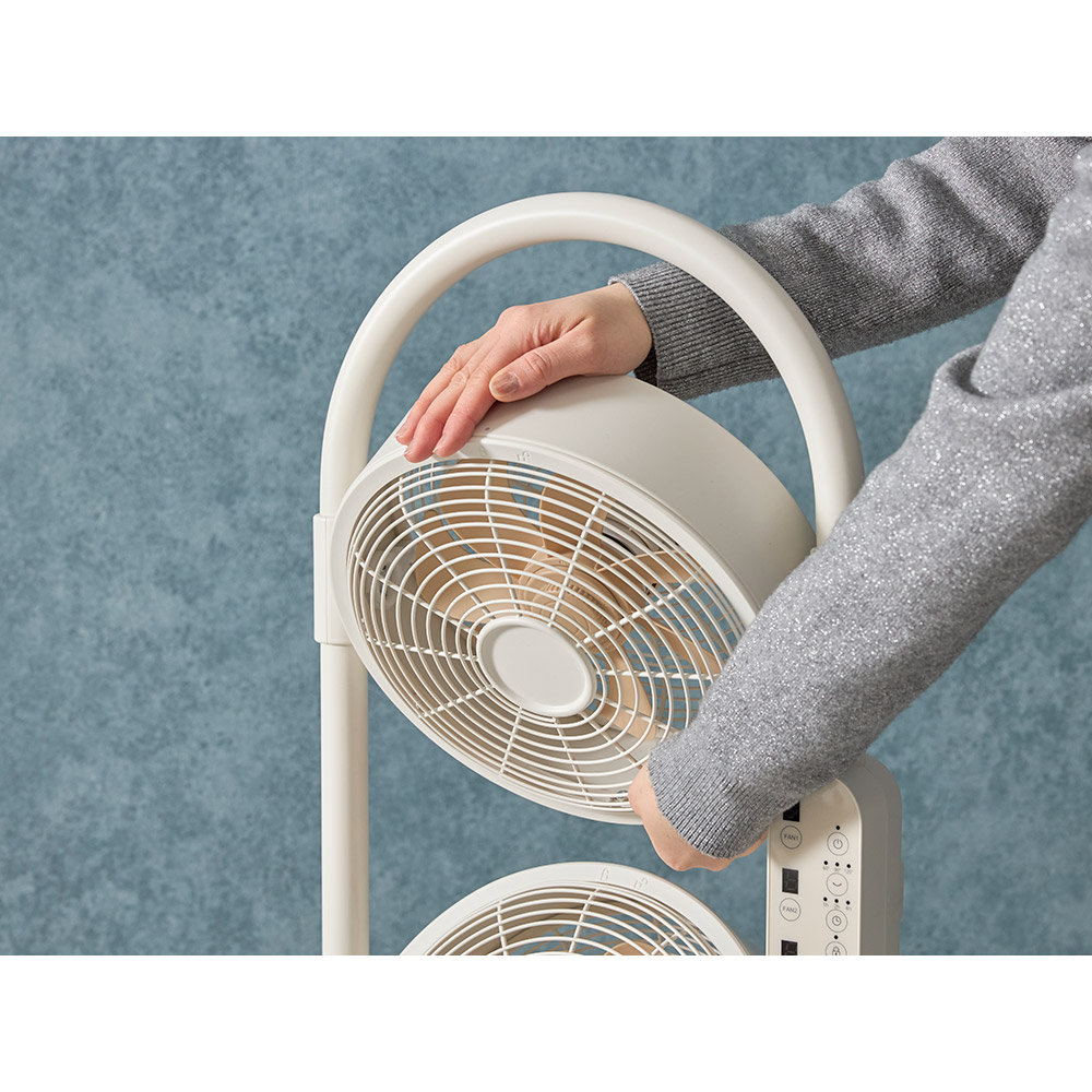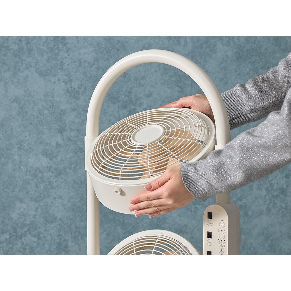 ●サーキュレーターとして:エアコンの温度ムラ解消に、上のファンは真上に、下のファンはまっすぐ向けることで、「足元だけが冷える…」などのお悩み解消にもおすすめです。