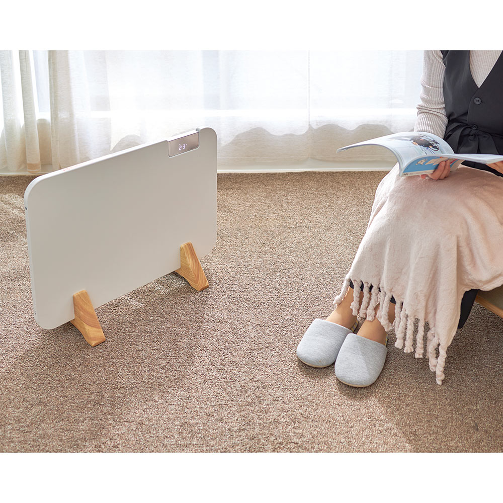 シーズヒーター管による遠赤外線で、まるでひだまりのような温もり。風を出さずに輻射熱と自然な空気の流れでじんわりと暖めるため、乾燥の心配も少なく快適です。約8畳までのお部屋を、空気を汚さずにぽかぽかと暖めます。