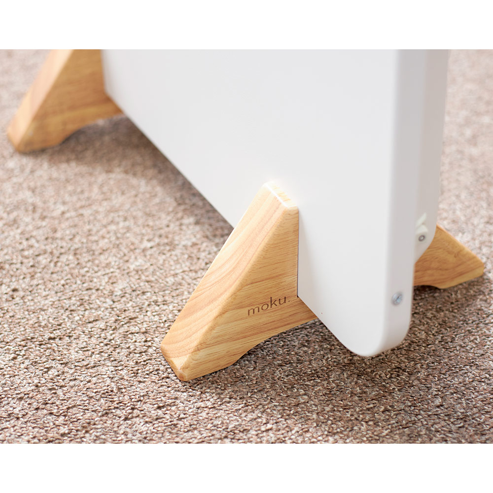 木目と白を基調としたシンプルでぬくもりのあるデザイン。お部屋のインテリアに自然と馴染みます。スタンドには天然木を使用し、温かみのある佇まいに。窓辺や壁際に置けば、冷気の侵入も防ぎます。商品画像の説明