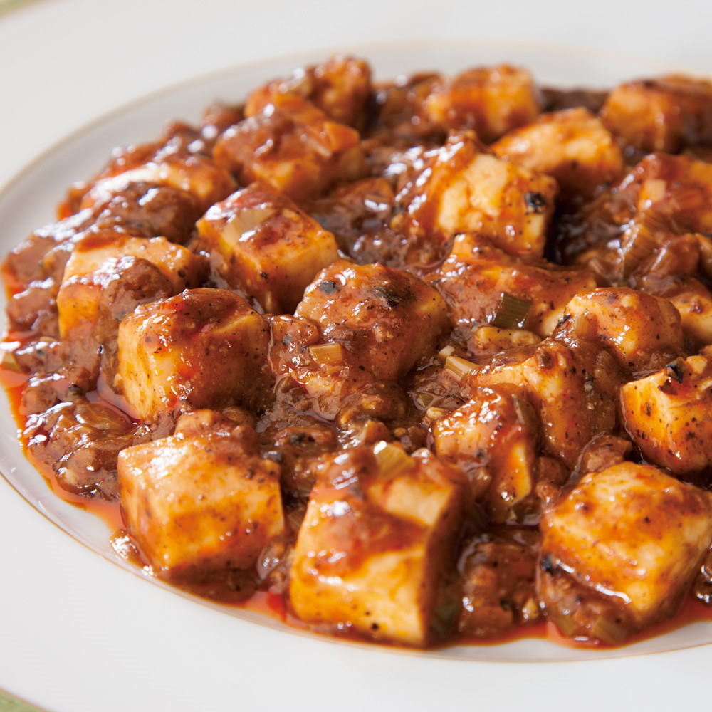 お店同様、3年物の豆板醤と山椒がきいた濃厚な味わい。ピリリと辛い本格四川麻婆豆腐です。
