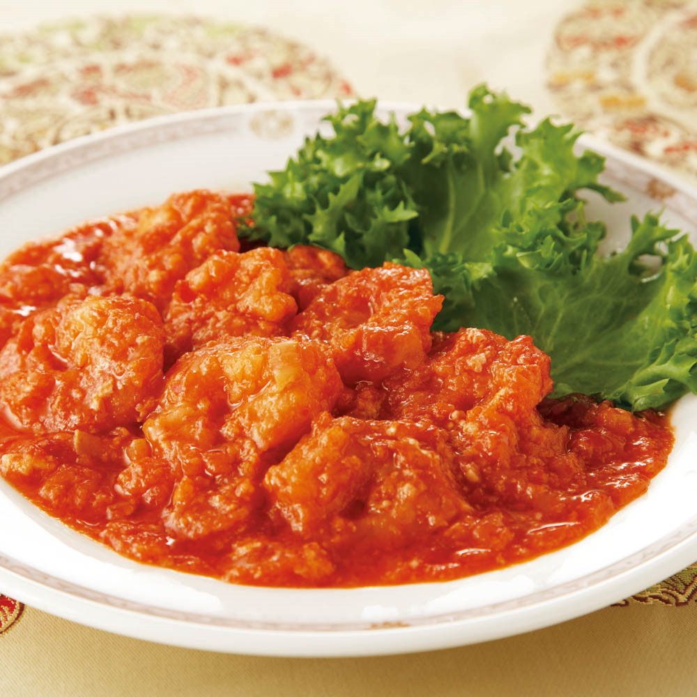 大きい海老にしっかり下味をつけて油通しすることで、香ばしくプリプリの食感に。