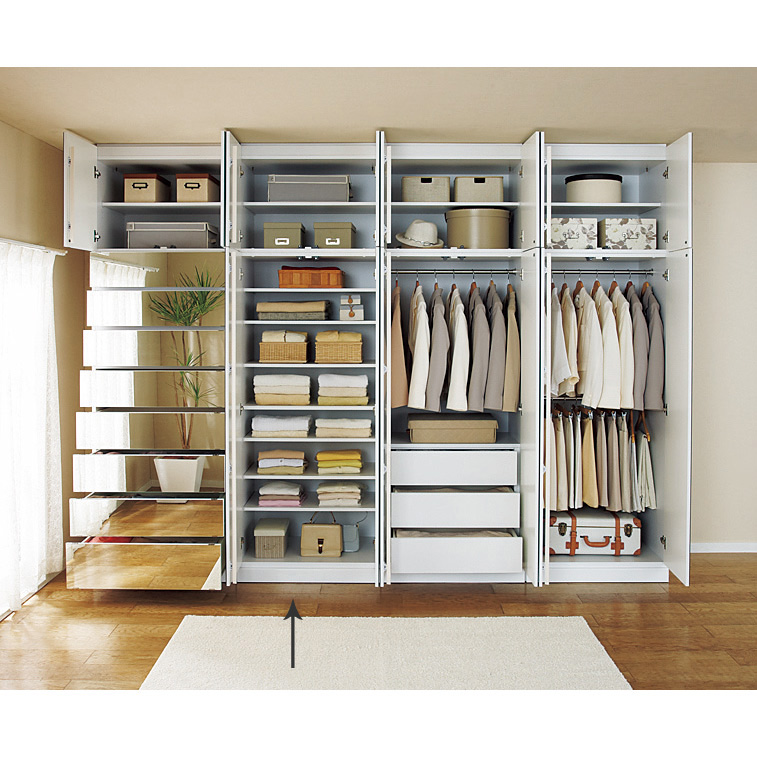 組み合わせ次第で、壁一面に大容量のクローゼットが完成します。