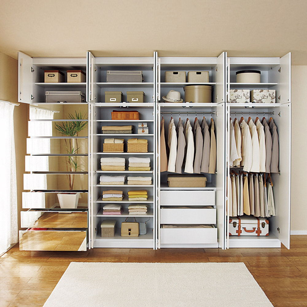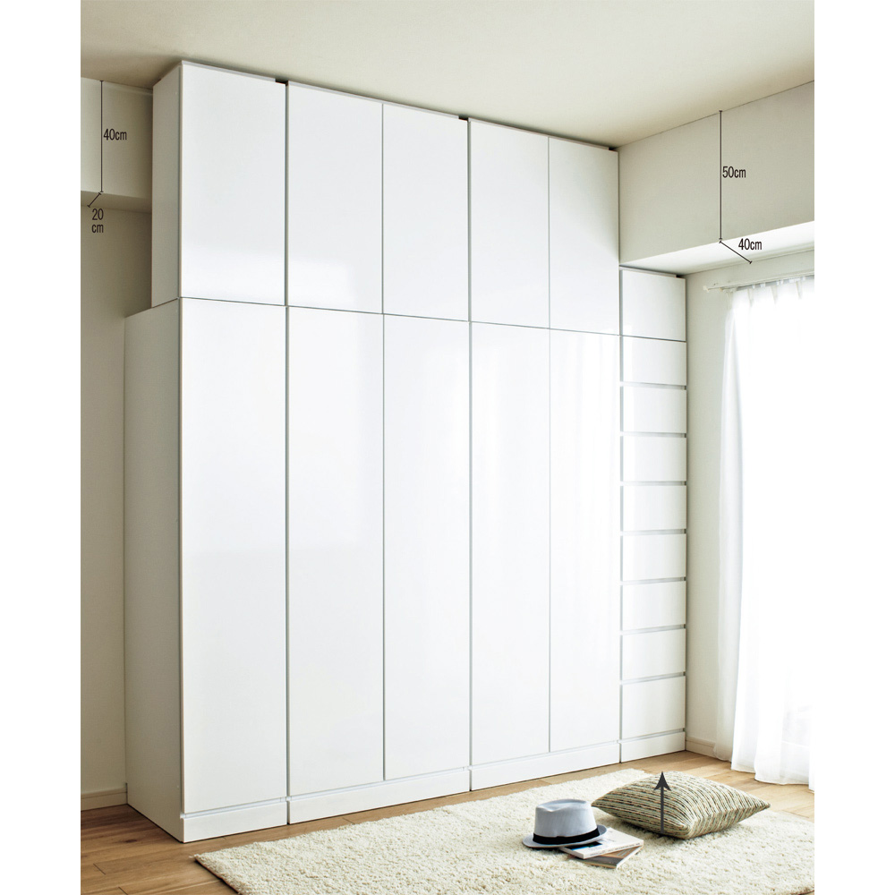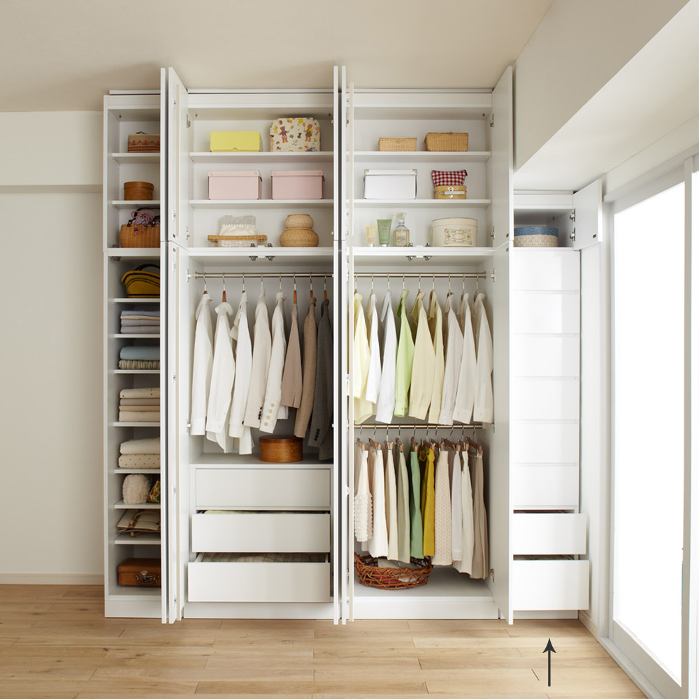 組み合わせ次第で、壁一面に大容量のクローゼットが完成します。