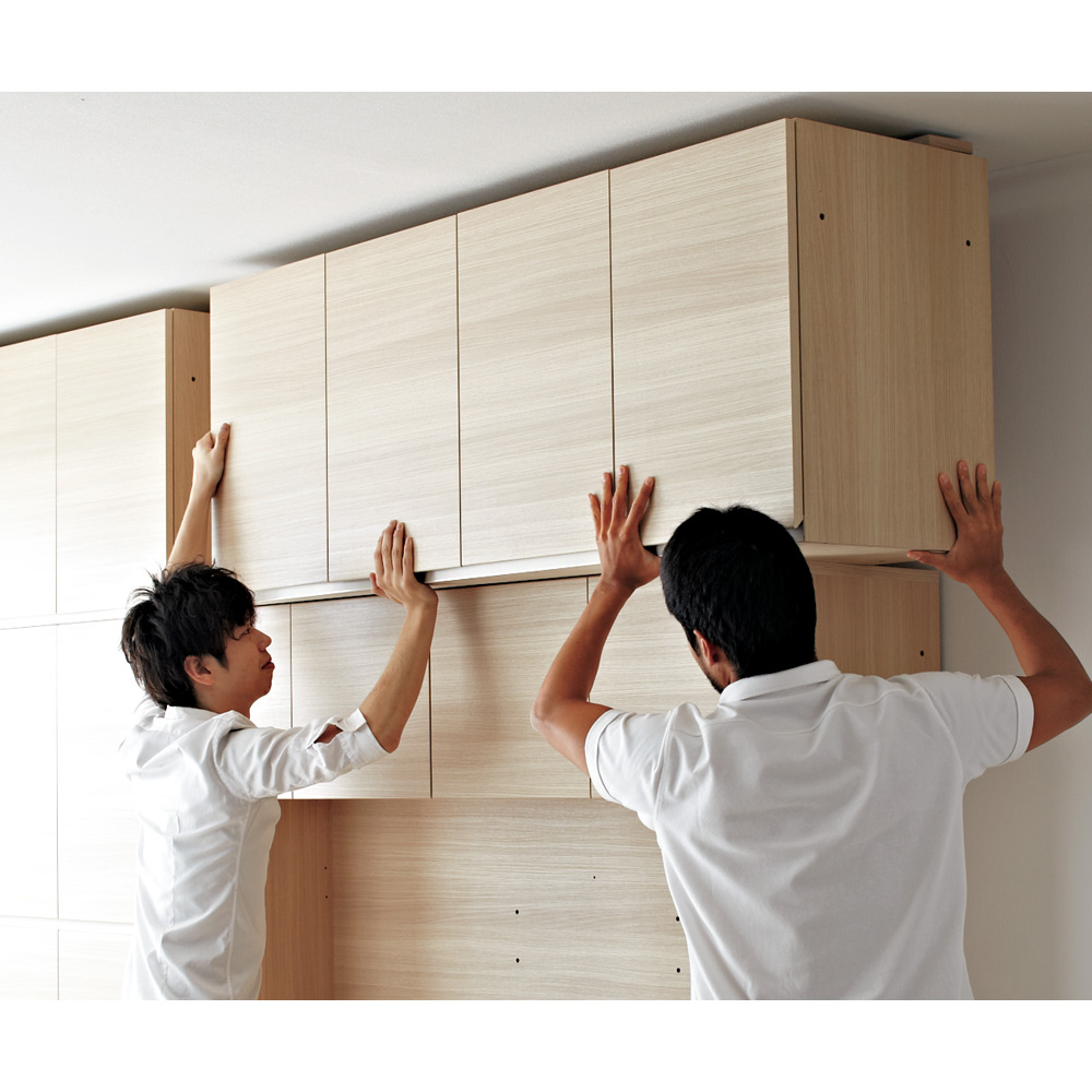 商品の開梱から組立・設置いたします ご注文時に有料にてお申し込みいただければ、お届け先のご指定の場所で本体と上置きの連結や天井の突っ張りなどの設置をいたします。 ※設置のイメージ写真です。写真の色は現在販売しておりません。