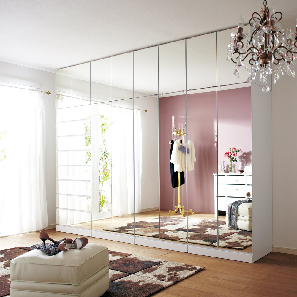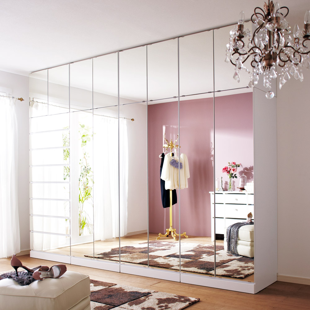 表面材の仕様は、寝室などの設置しても空間が広く見えるミラー扉タイプ、美しい光沢のホワイト色の板扉タイプからお選びいただけます。