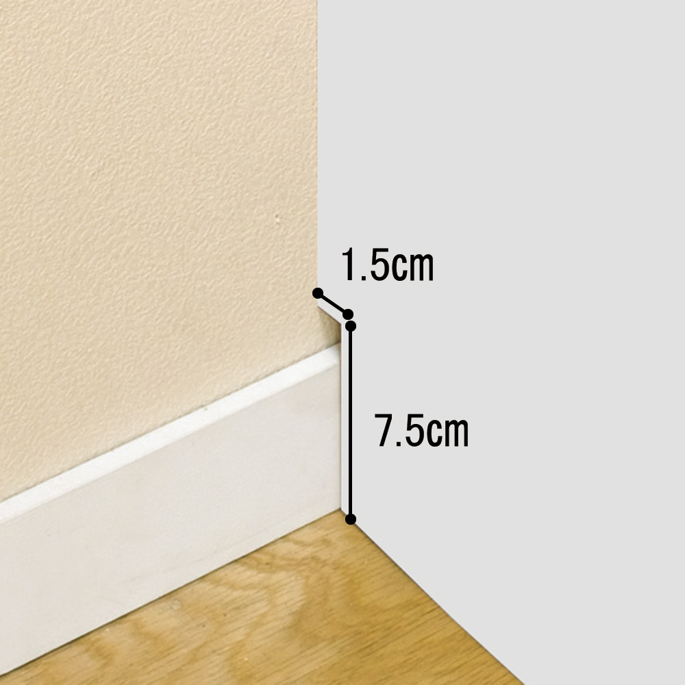 幅木をよけて壁にぴったり設置可能。