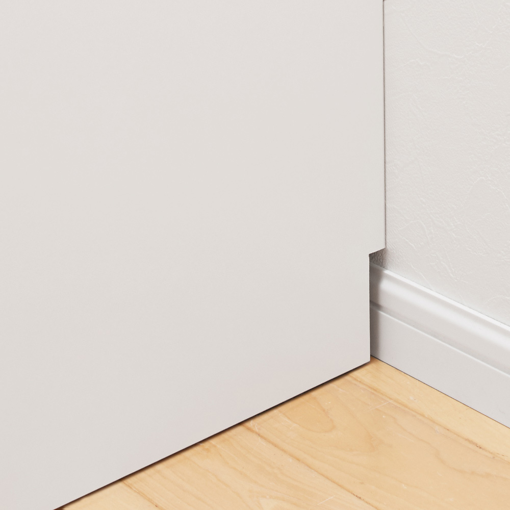 ■薄型収納でも壁との間に無駄なスペースがあると残念。■7.5×1.5cmの巾木カットで壁ぴったりに設置。