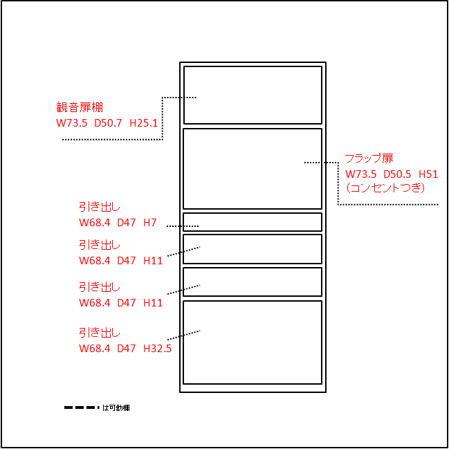 オープン部内寸(単位:cm) ※奥行=上段=50.5下段=48.5