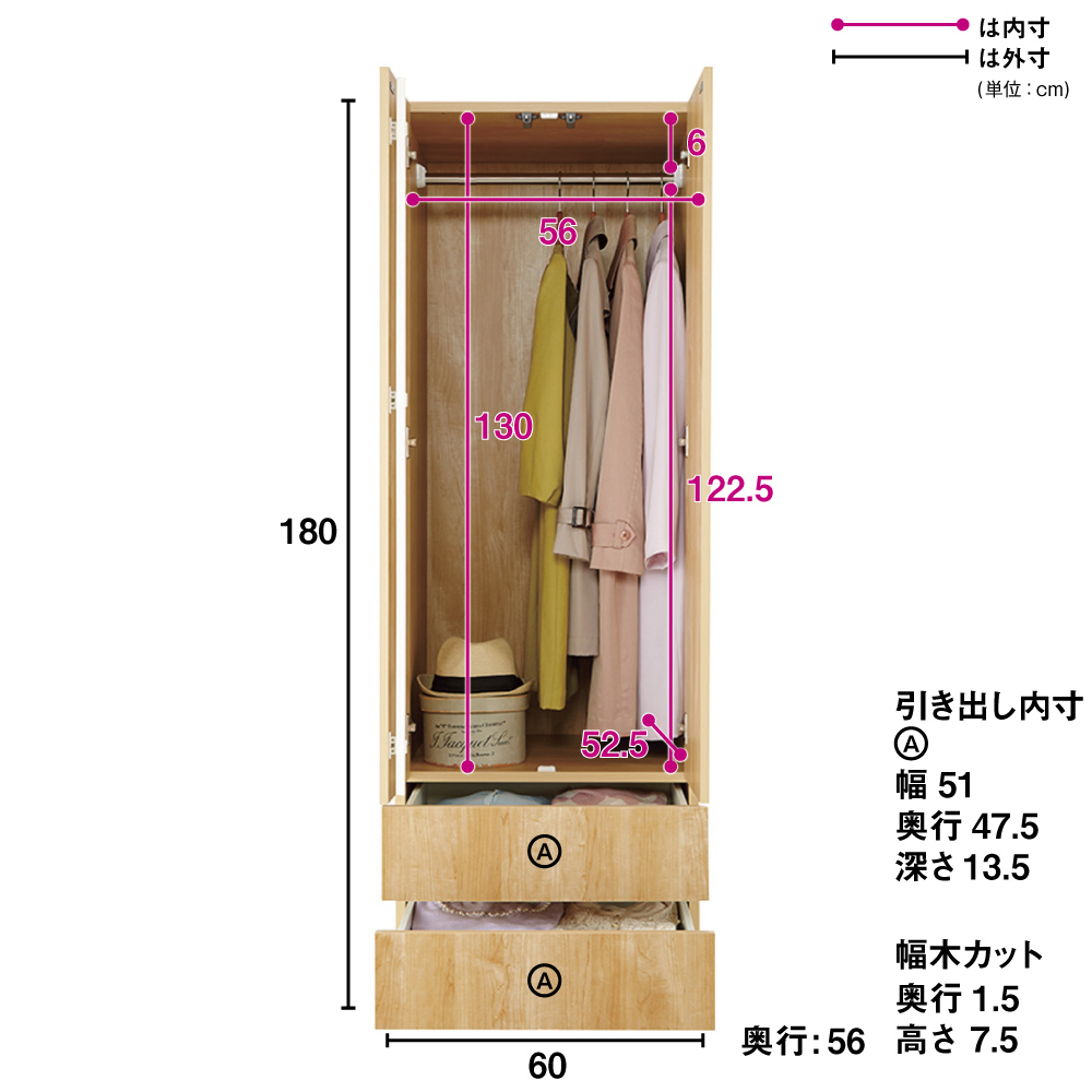 ■収納部(有効内寸) 幅56cm 奥行52.7cm 高さ130cm
