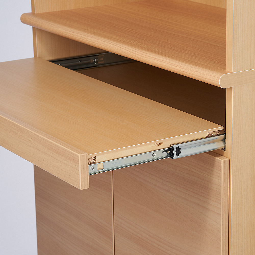 収納棚には、3cm間隔で細かく調節できる可動棚板付き。