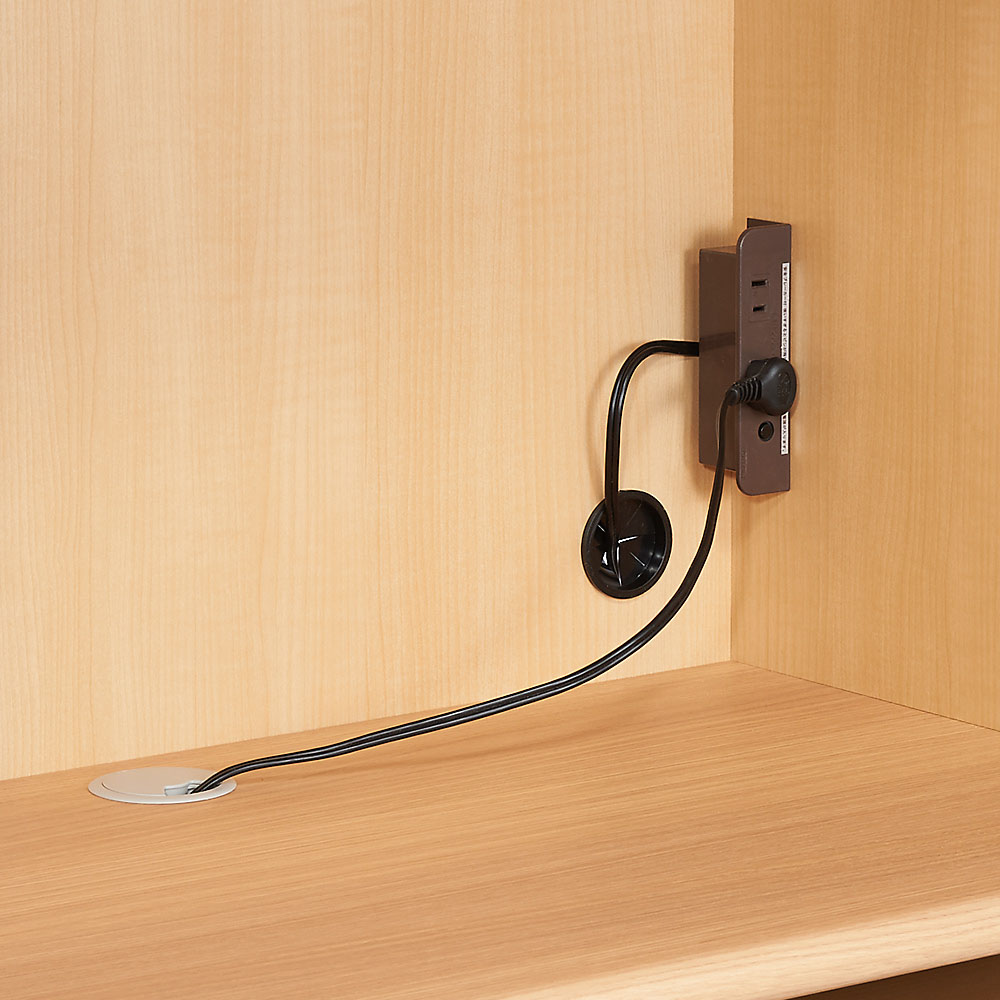 配線は側面コード穴から内部を通せるので、設置後のセッティングや並び変えも簡単・手軽に行えます。幅木カットで壁にピッタリ設置もできます。