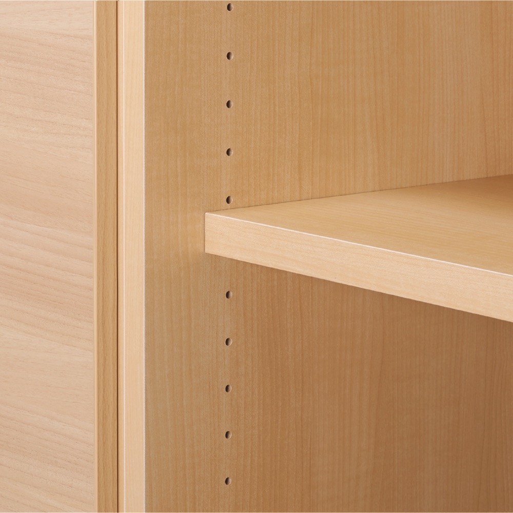収納棚には、3cm間隔で細かく調節できる可動棚板付き。