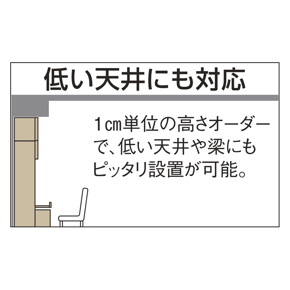 ●同シリーズのオーダー対応上置きと組み合わせれば、天井までのスペースいっぱいを収納棚としてご利用いただけます。