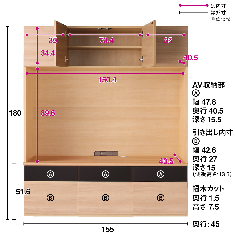 ■テレビ台収納部内寸:幅150.4cm 奥行40.5cm 高さ 90cm