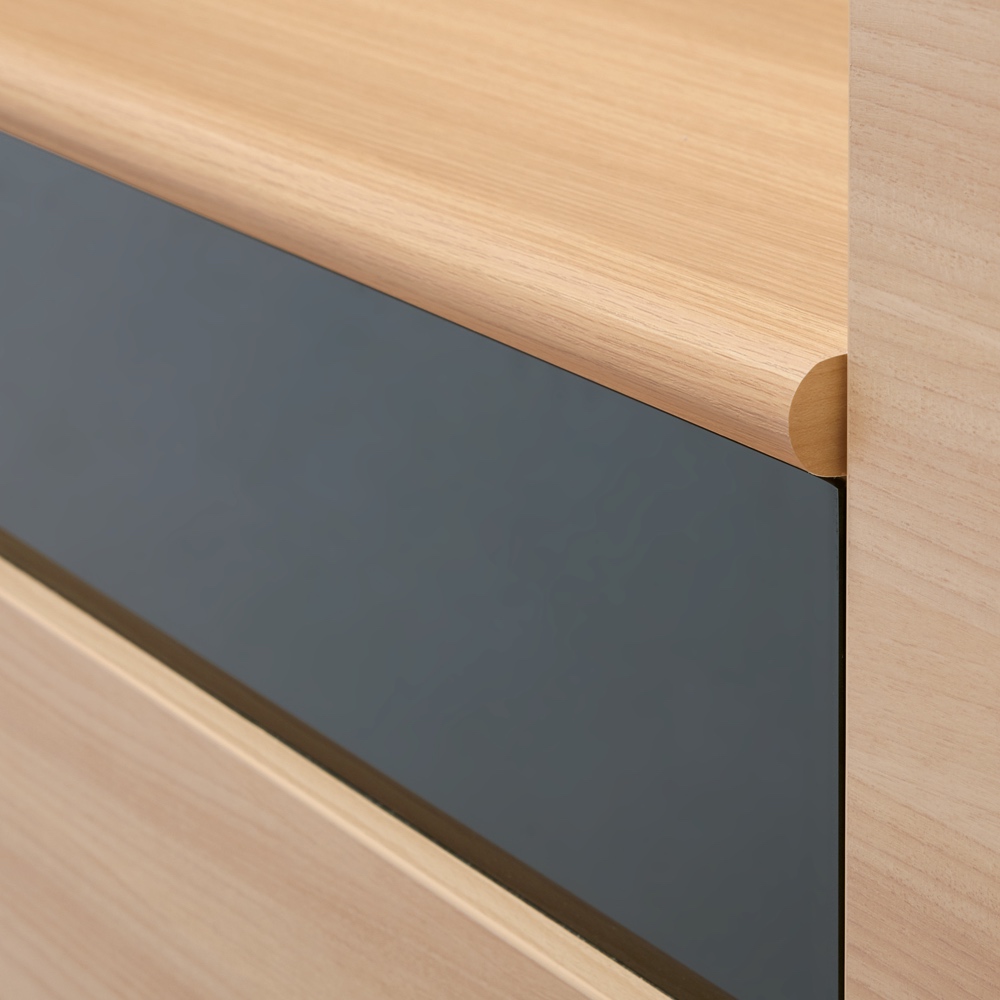 TV台は、継ぎ目を隠す優しい曲面のポストフォーム加工。
