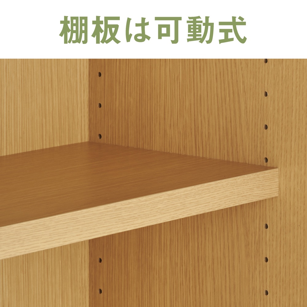 ●扉・オープンタイプは上下が扉収納、真ん中がオープン棚なので書類やファイル、雑貨など大きいものを棚板の高さを変えながら効率よく収納できます。