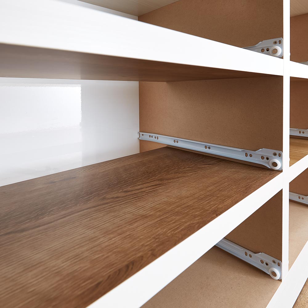 ■引き出しには開閉・出し入れがスムーズなコロ付きスライドレールを採用。