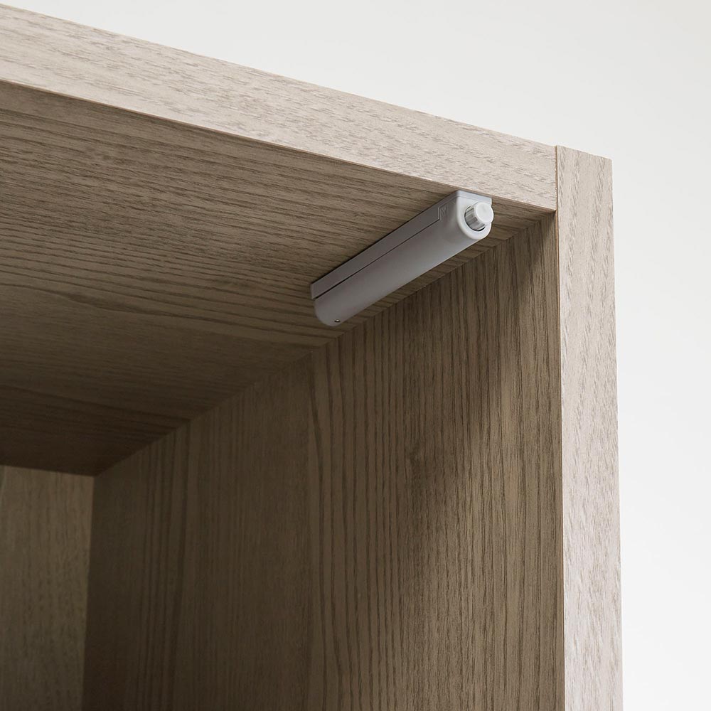 1cm単位でオーダーできる上置きも一緒に組み合わせれば、壁一面に大容量のクローゼット収納が完成します。