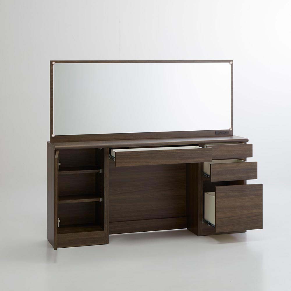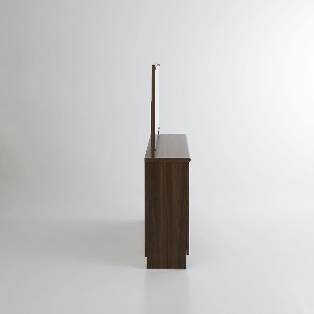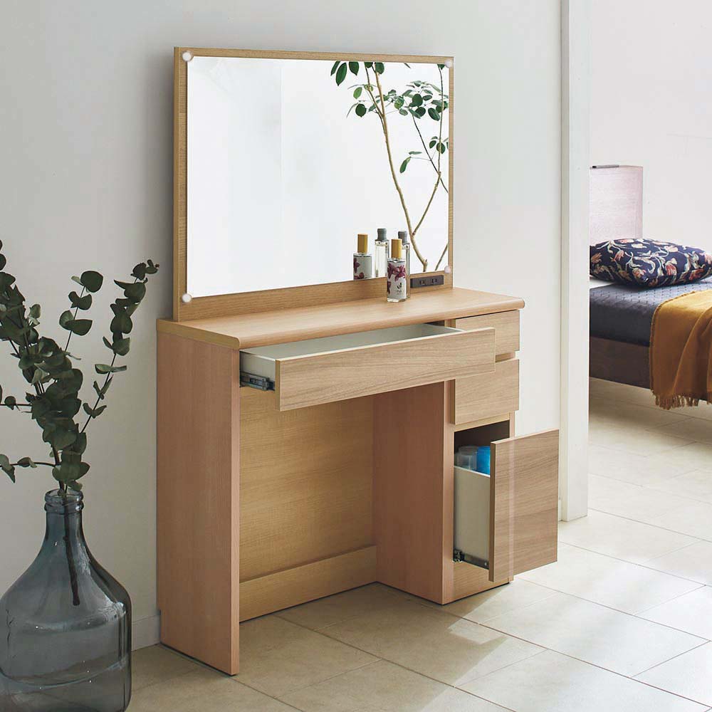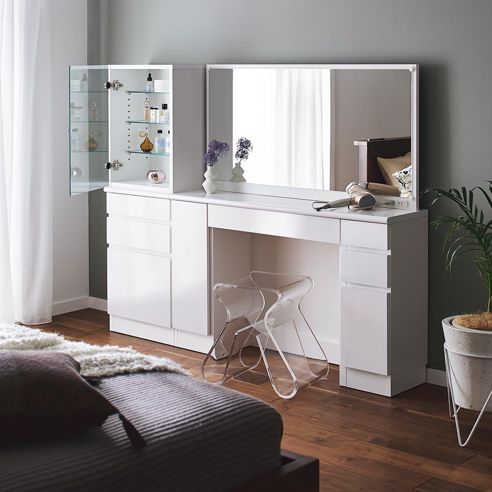 奥行き30cmとスリムでも収納力をしっかり持たせたドレッサーシリーズ。奥行きが浅いことで鏡が顔に近くなり、メイクもしやすくなりました。