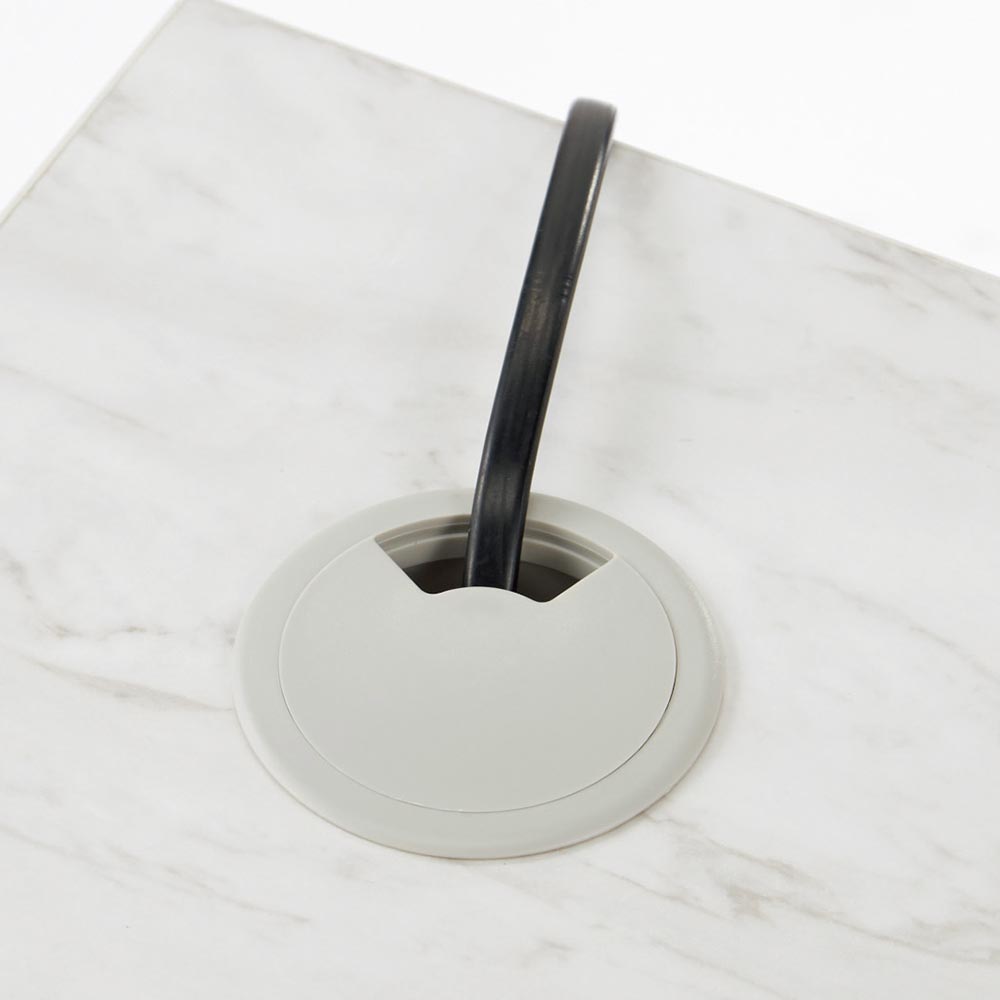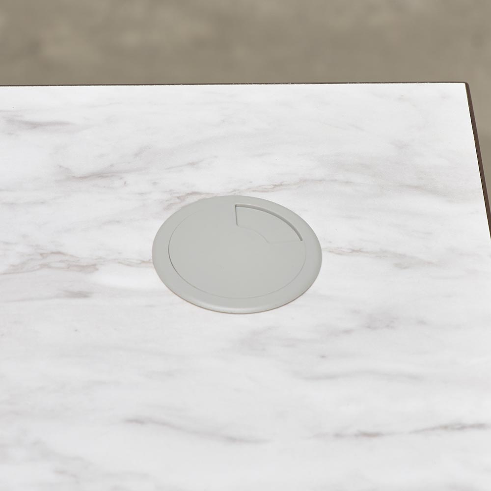 デスク天板に配線に便利なコード穴付き。