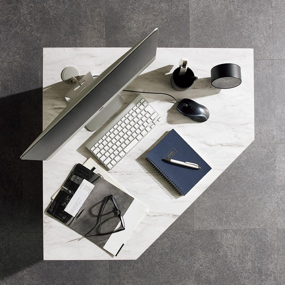 白い石目調の天板とコントラストがお部屋に映えます。