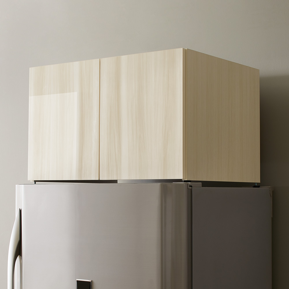 • (ア)ホワイト木目 冷蔵庫上の凸凹に対応できるアジャスター付き。