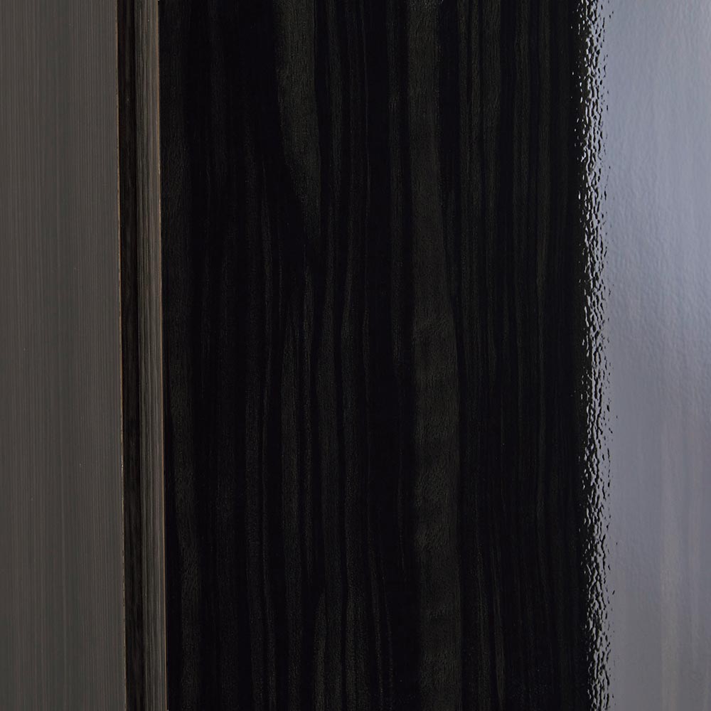 • (イ)ブラック木目 前面は光沢木目のオレフィン化粧板を使用いたしました。水や汚れに強い素材なのでお手入れも簡単。