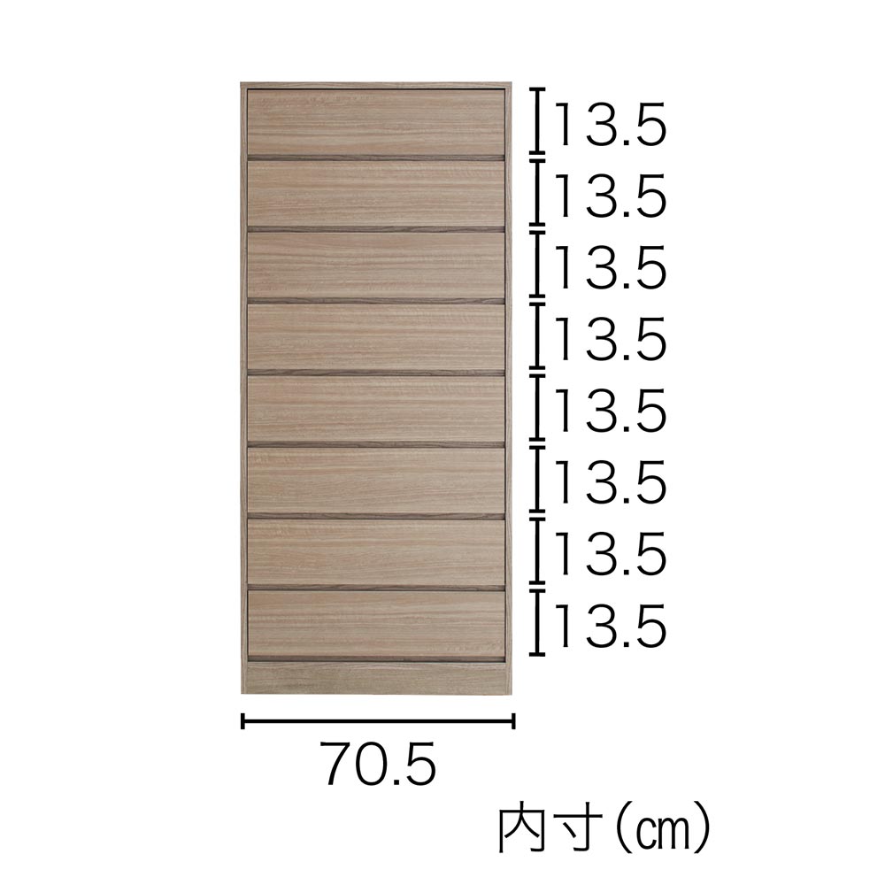 ●引き出しは1杯あたり、高さ13.5cm×奥行47cmです。