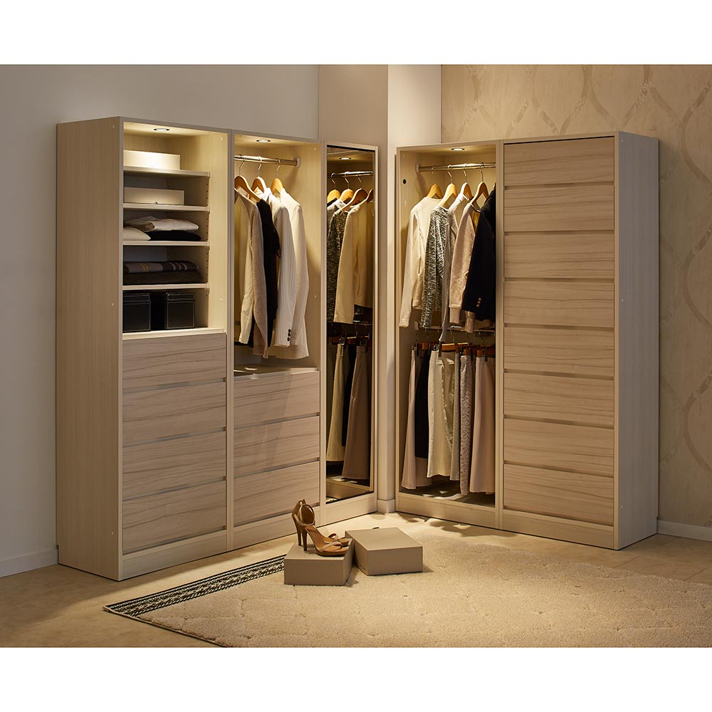 暗くなりがちな衣裳部屋を明るく照らし、コーディネートの際にも便利。