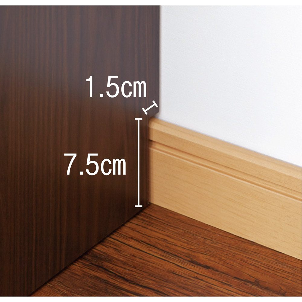 ◆幅木よけカットが施されており、壁にぴったりと設置が可能。