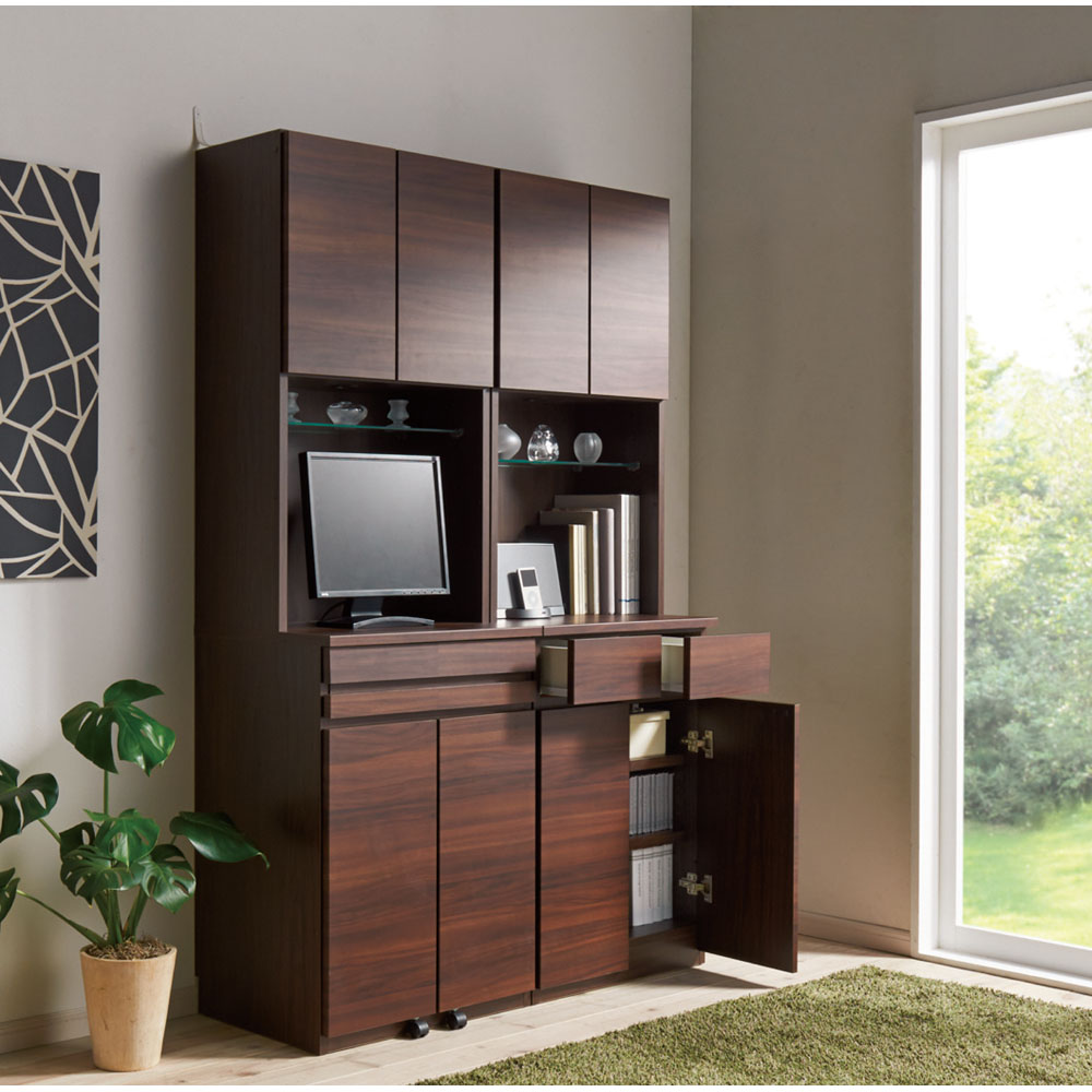 コーディネート例(ア)ダークブラウン ※お届けは引き出し付き・幅78cmです。※写真の天井高さ240cm