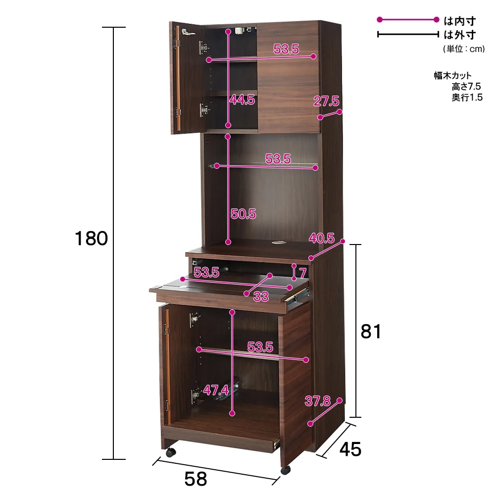 ■上部扉有効内寸:幅53.5奥行27.5高さ44.5cm