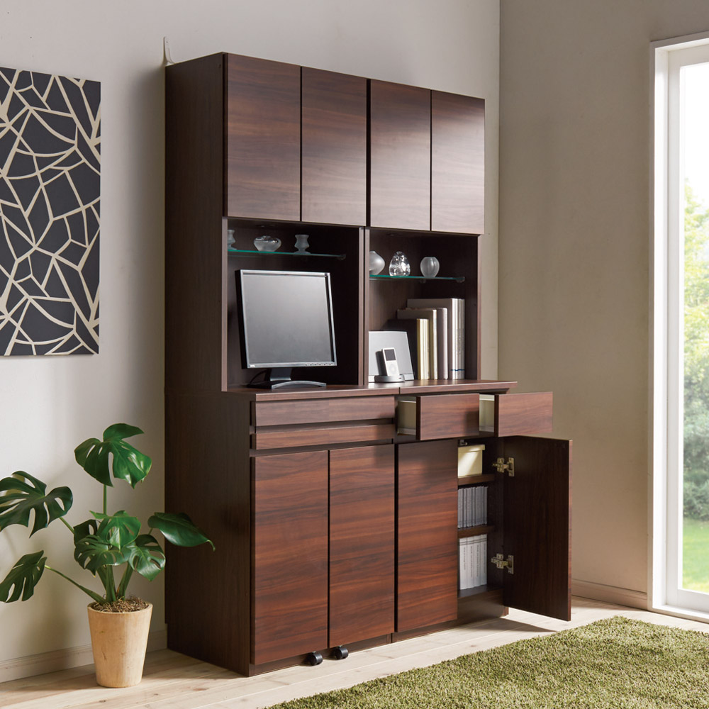 ◆自宅に居ながら高級レストランの雰囲気に酔いしれたい…そんな思いをかなえるブックラック&パソコンデスクシリーズです。◆収納庫に搭載されたLEDライトが、ガラス棚を美しく照射するディスプレイラック。