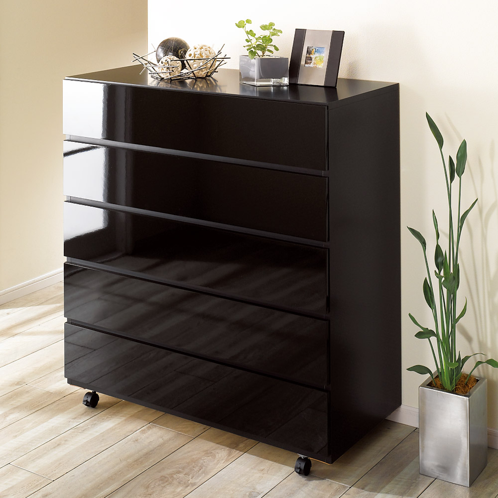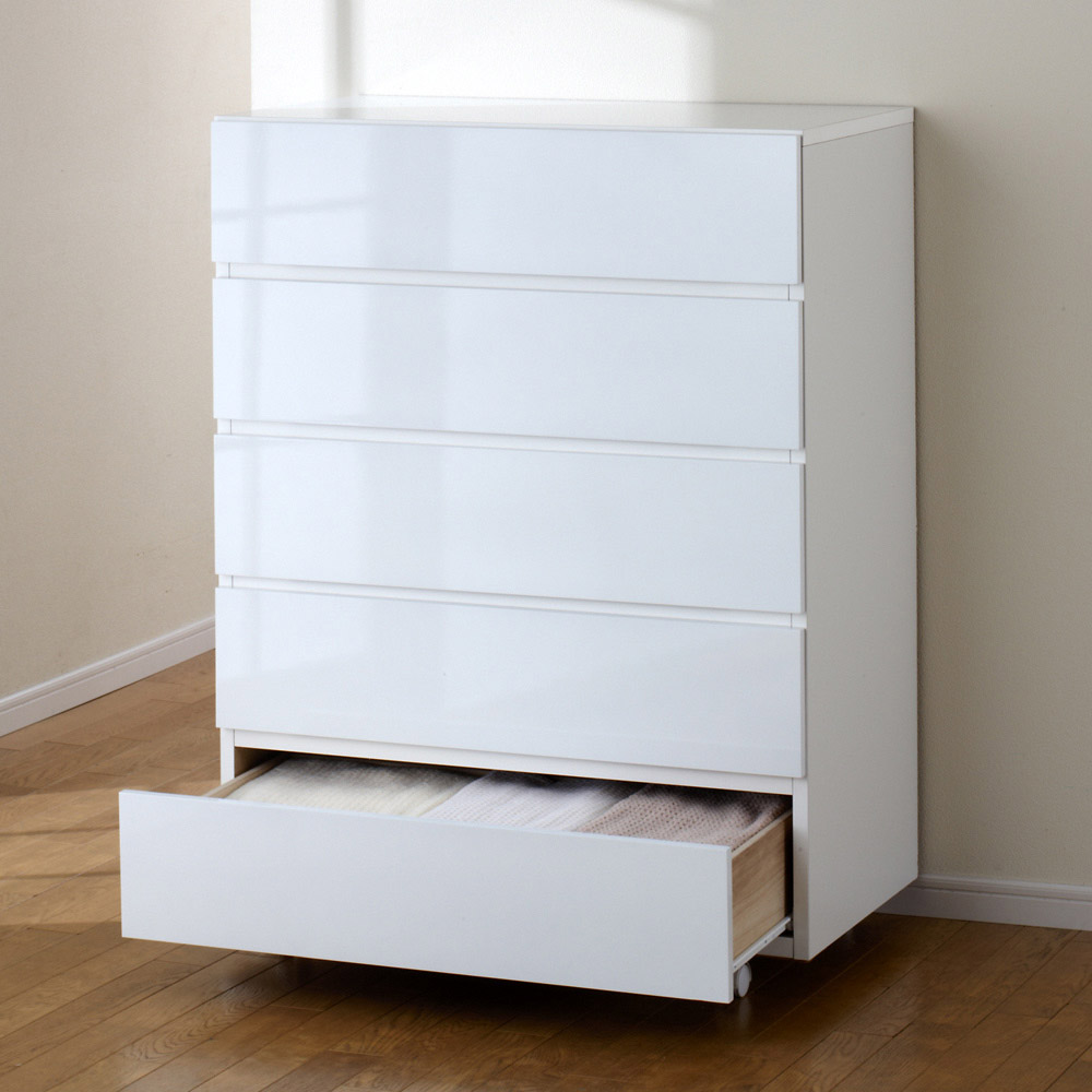 奥行46cmキャスター付きツヤツヤチェスト 幅80cm・5段 押入れ クローゼット収納 衣類収納 632915