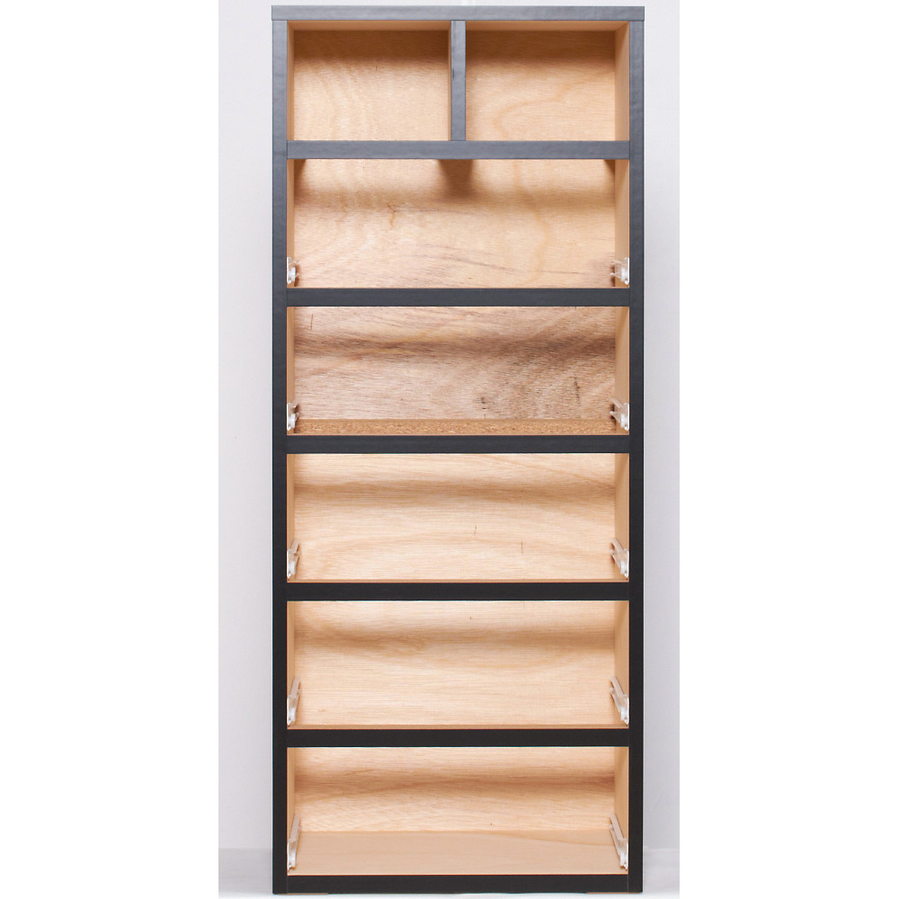 • 引き出しを抜いた状態。引き出し間の全段に補強板を施し、本体の強度をUPしています。