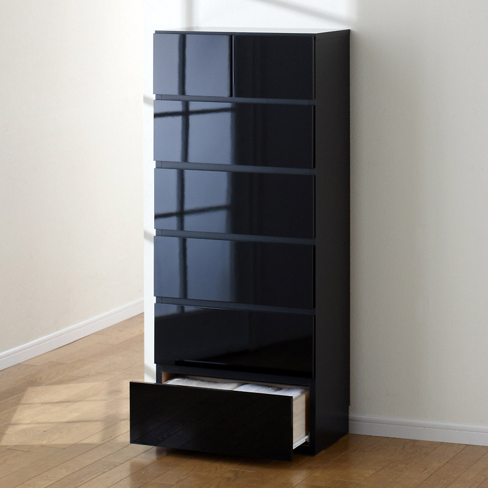 美しい光沢が高級感を演出する、クローゼットはもちろんリビングにもおすすめのハイチェスト(タンス)です。