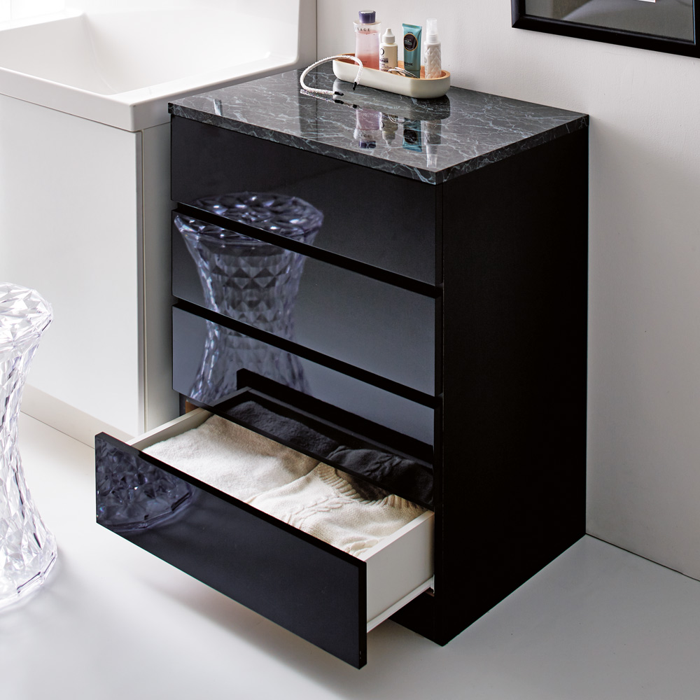 洗面所や脱衣所で使いやすい収納力と都会的なデザインを兼ね備えたチェスト