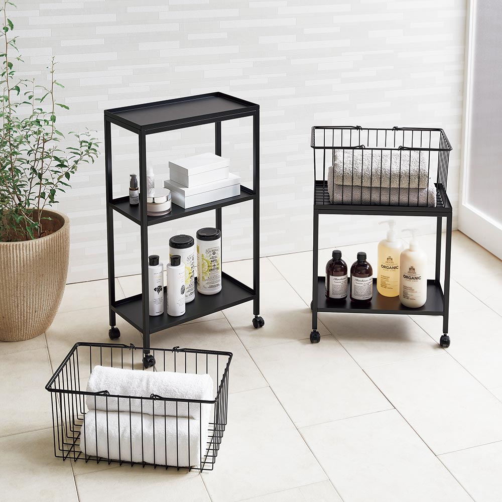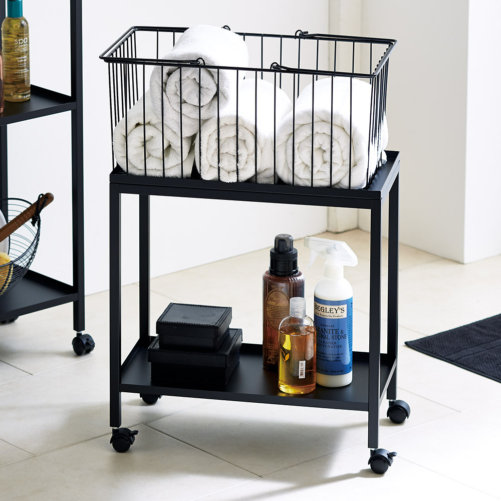タオル、着替え、バスグッズなどお風呂の必需品をワゴンですっきり収納