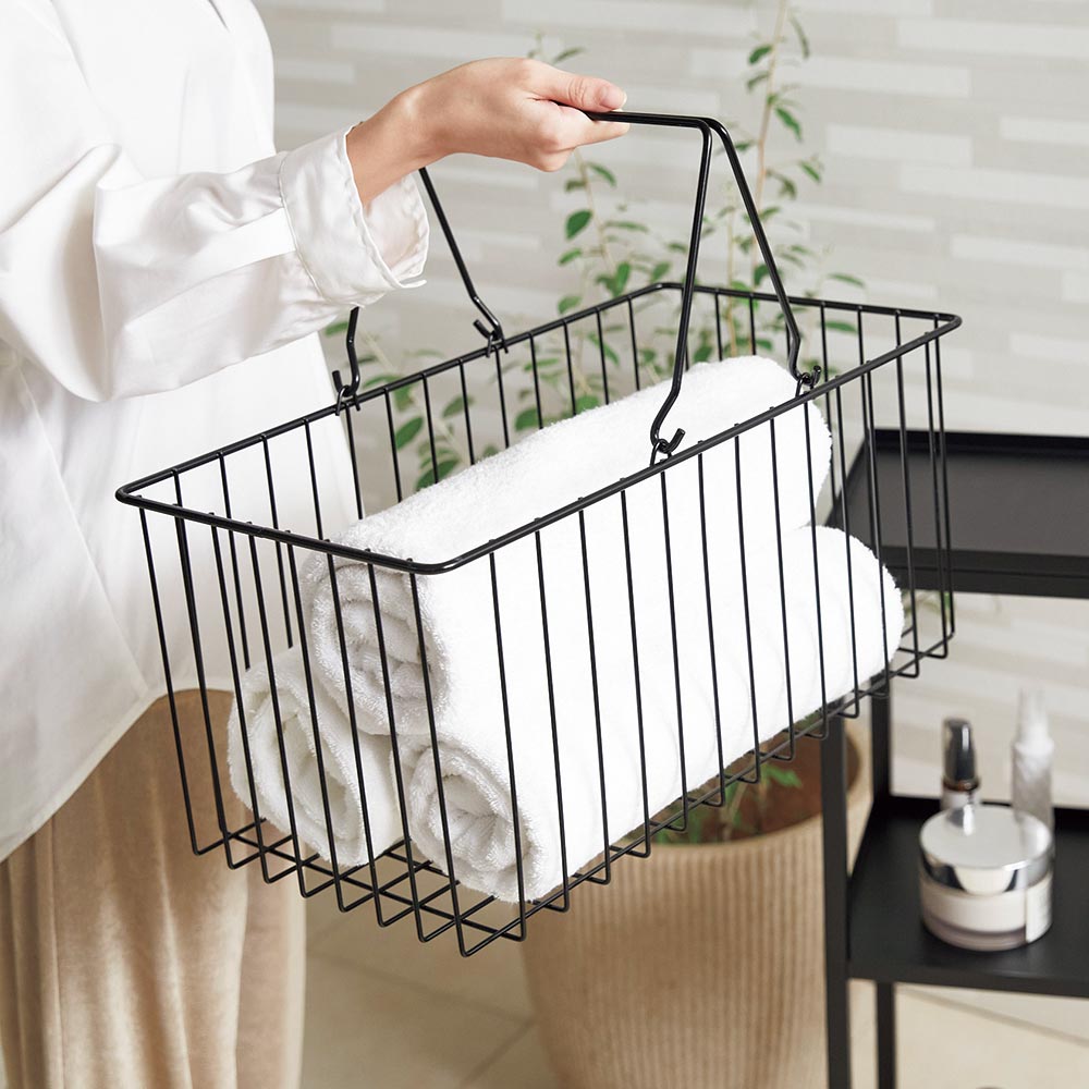 ◆カゴは便利な取っ手付き。お風呂上りに洗濯物をそのまま洗濯機まで持っていくのにも便利です。