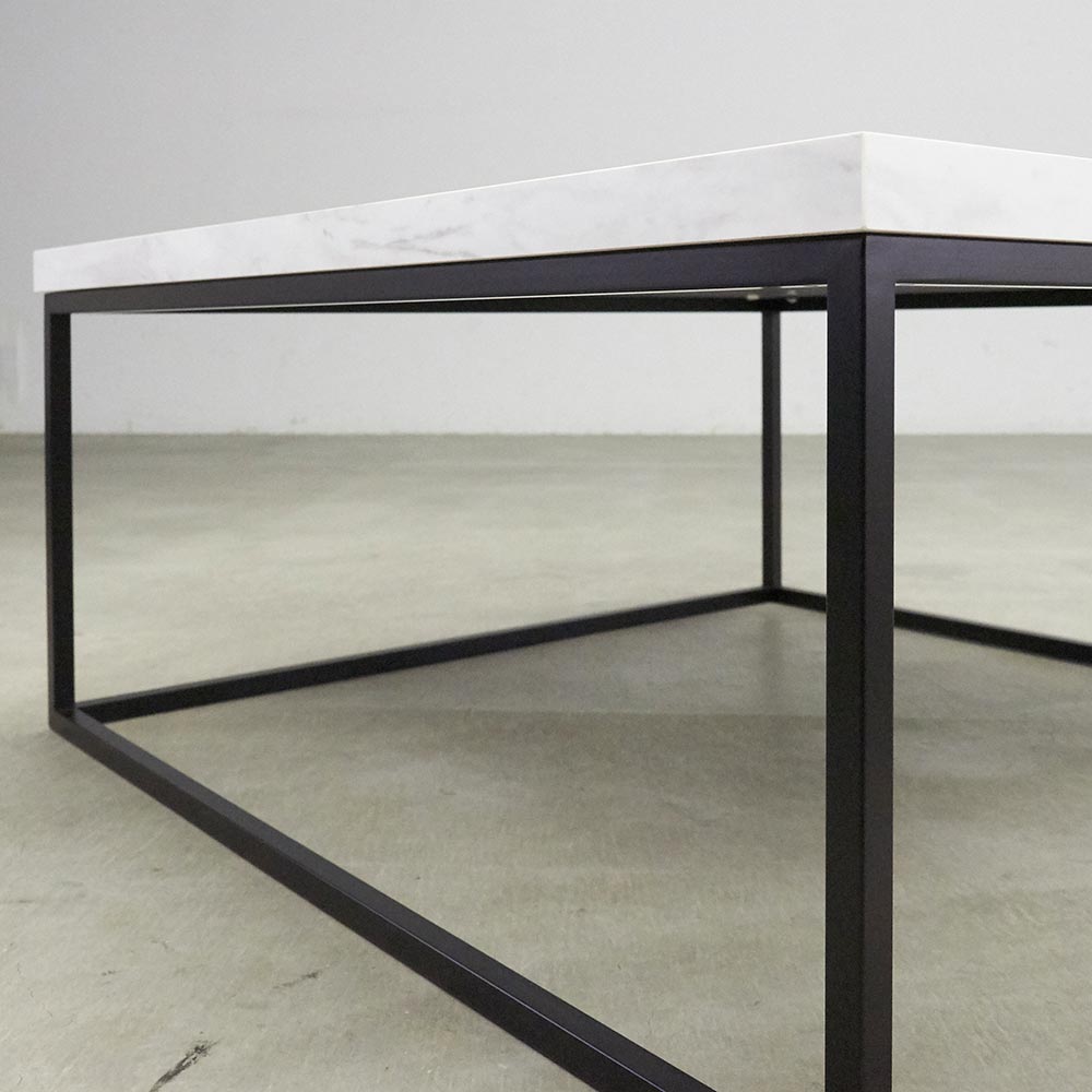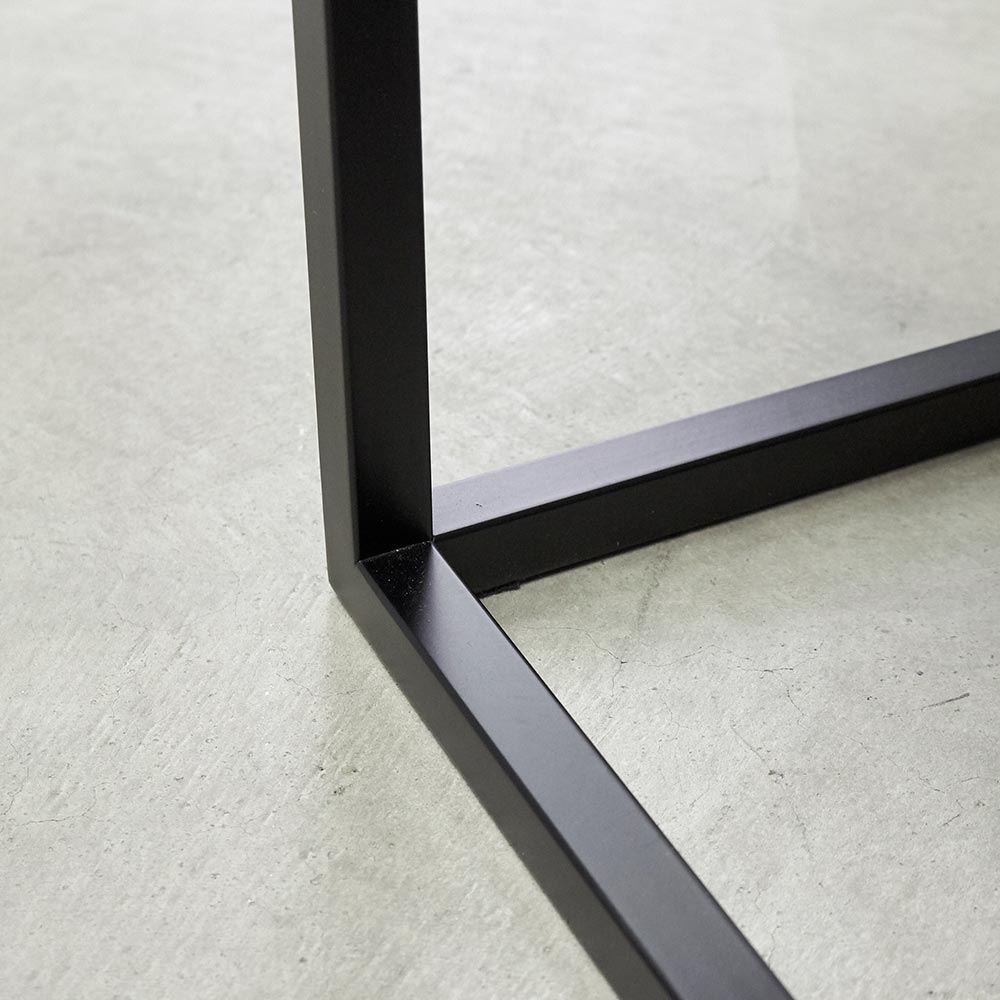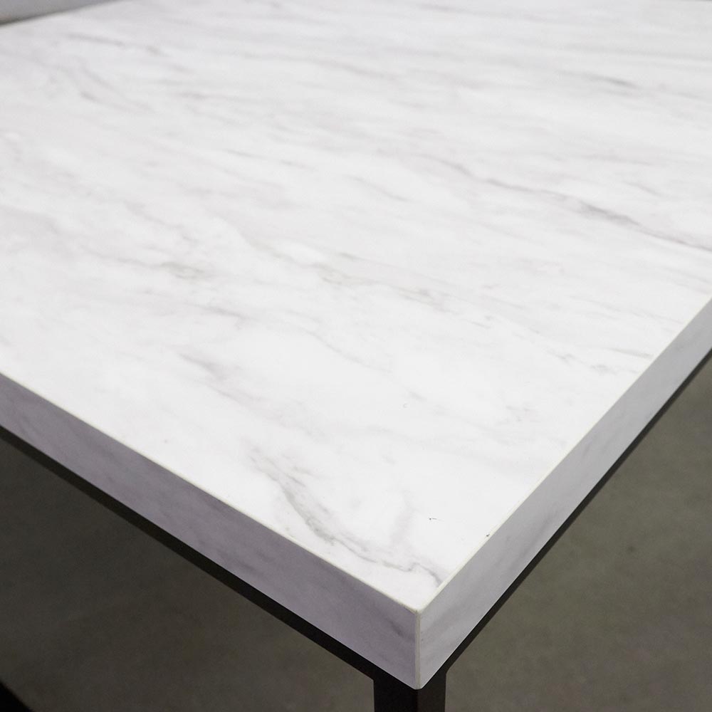 シンプルながら、石目調の天板とブラックスチール脚。2つの素材のコントラストがシックな輝きを添えます。お洒落でモダンな大理石調の天板が、印象的な空間を演出します。