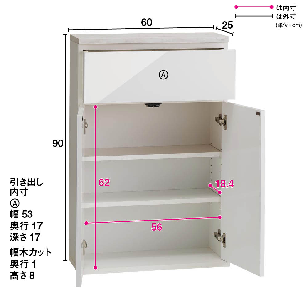 ■サイズ:幅60cm奥行25cm高さ90cm、引き出し奥行17cm