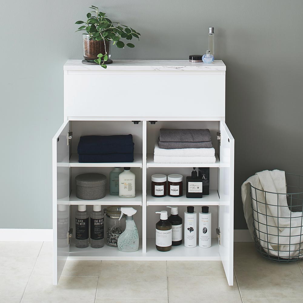 Marblenome/マーブルノーム 薄型サニタリーストッカー 幅60cm 引き出し+扉 洗面所収納 隙間収納 トイレ 洗面所 ランドリー収納 H92228